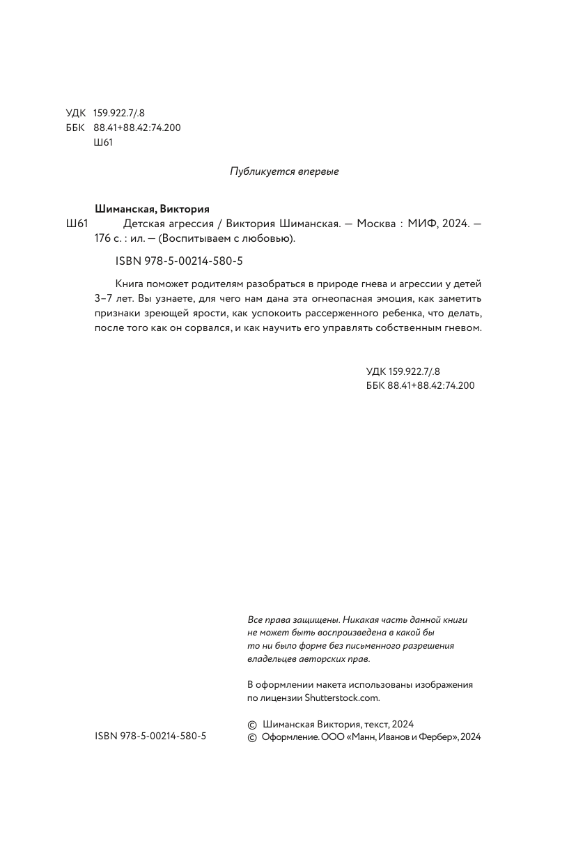 Книга: Детская агрессия (Виктория Александровна Шиманская); Манн, Иванов и Фербер, 2025