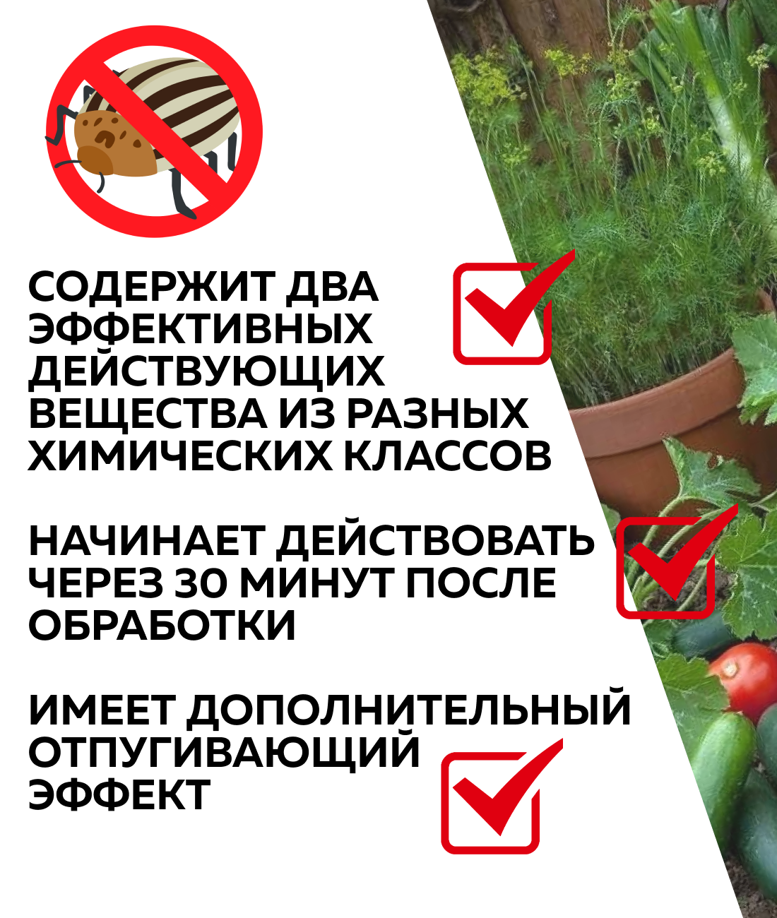 - Защищает от: гусениц, колорадского жука, листогрызущих вредителей.