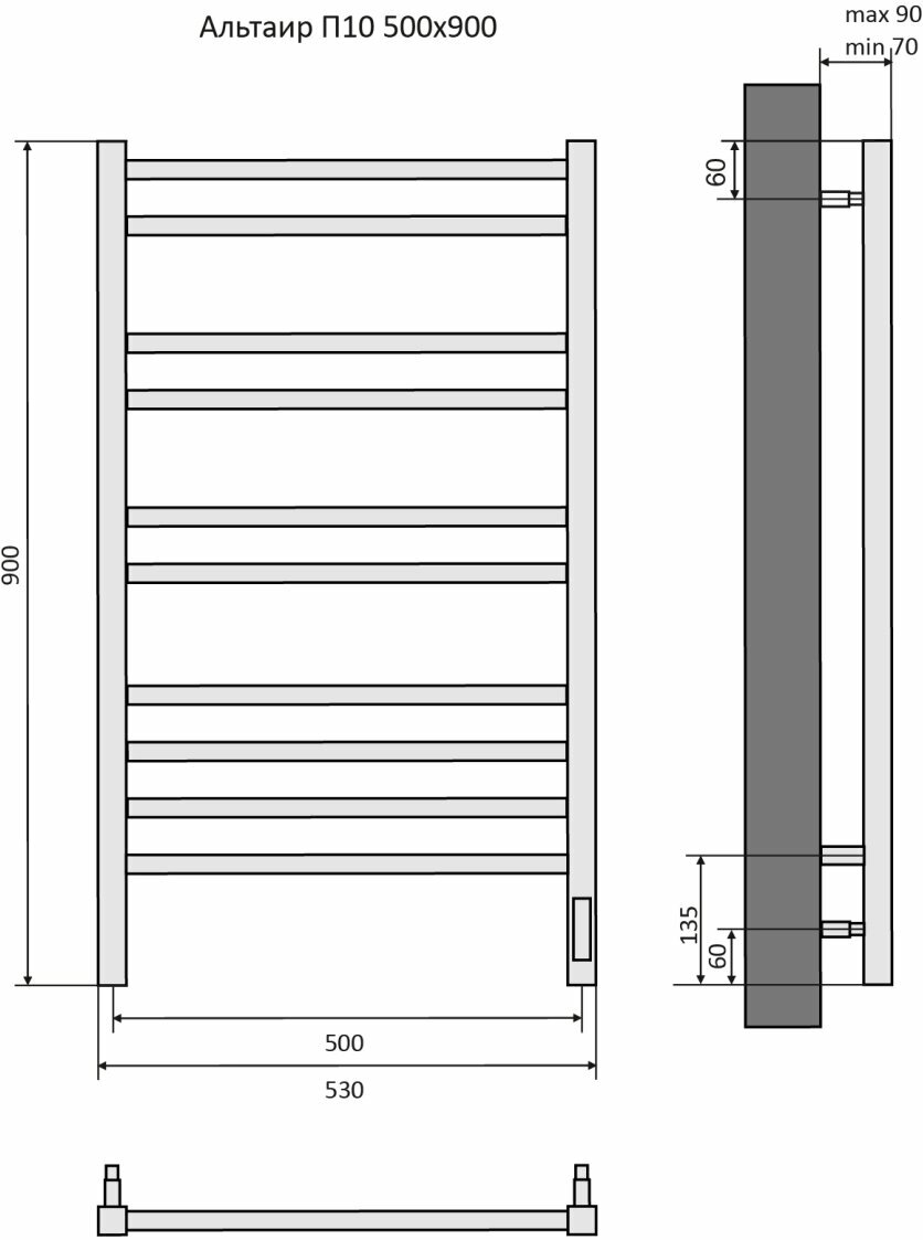 Электрический полотенцесушитель Aquatek Альтаир П10 500x900 AQ EL KP1090BL Черный муар (размер: 53x90 см)