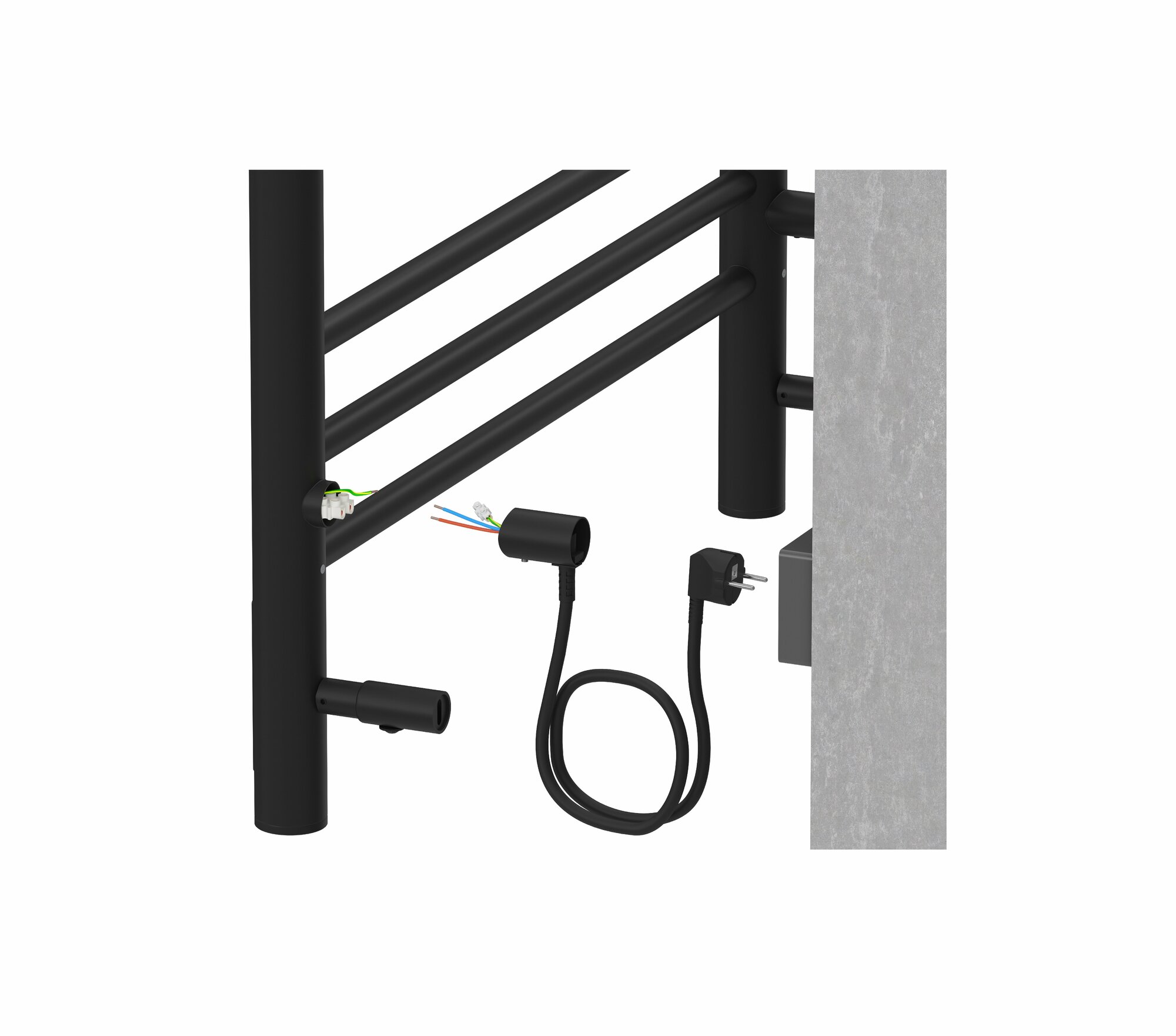 Стильный и функциональный полотенцесушитель Aquatek станет идеальным решением для вашей ванной комнаты, обеспечивая комфорт и уют. Полотенцесушитель Aquatek можно использовать не только для сушки белья, но и для обогрева небольшого помещения, что делает его незаменимым аксессуаром в любой ванной комнате. Особенности электрического полотенцесушителя Aquatek: -Стильный дизайн: полотенцесушитель имеет современный и элегантный вид, который идеально сочетается с любым интерьером ванной комнаты. -Эффективное отопление: благодаря продуманной конструкции полотенцесушителя, он быстро и равномерно прогревает воздух в помещении, создавая комфортную атмосферу. -Надежность и долговечность: полотенцесушитель изготовлен из высококачественной нержавеющей стали, что гарантирует его прочность, устойчивость к коррозии и длительный срок службы. -Использование в производстве роботизированной лазерной сварки обеспечивает: Надежность и прочность изделия на всю толщину трубы; Ровный и узкий шов за счет точной траектории сварки и четкую геометрию изделий. -Полимерное порошковое покрытие в цвете черный муар обеспечивает высокую устойчивость к коррозии, механическим повреждениям и воздействию различных химических веществ, что обеспечивает долгий срок службы изделий. Кроме того, полимерное порошковое покрытие не содержит вредных химических веществ и является экологически безопасными. -Простота установки и полная комплектация, изделие готово к установке: все необходимое для монтажа уже в комплекте. Для монтажа не потребуется профессиональная помощь или использование сложных инструментов. Достаточно закрепить полотенцесушитель на стене в непосредственной близости от розетки. Габарит выступа от стены регулируется телескопическими крепежами. -Экономичное потребление: электрический полотенцесушитель Aquatek потребляет на уровне 100 Вт/ч., что соизмеримо с потреблением обычной лампочки. -Безопасность продукции подтверждена сертификатом соответствия.