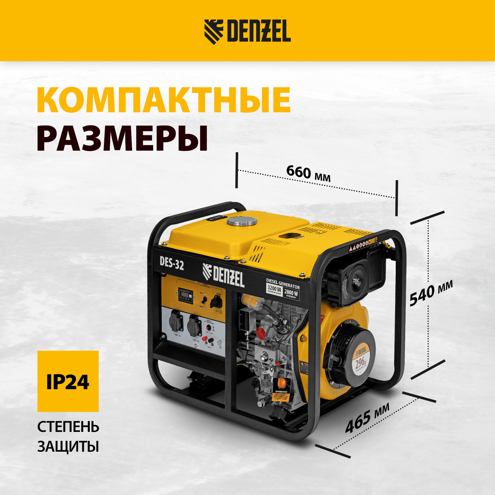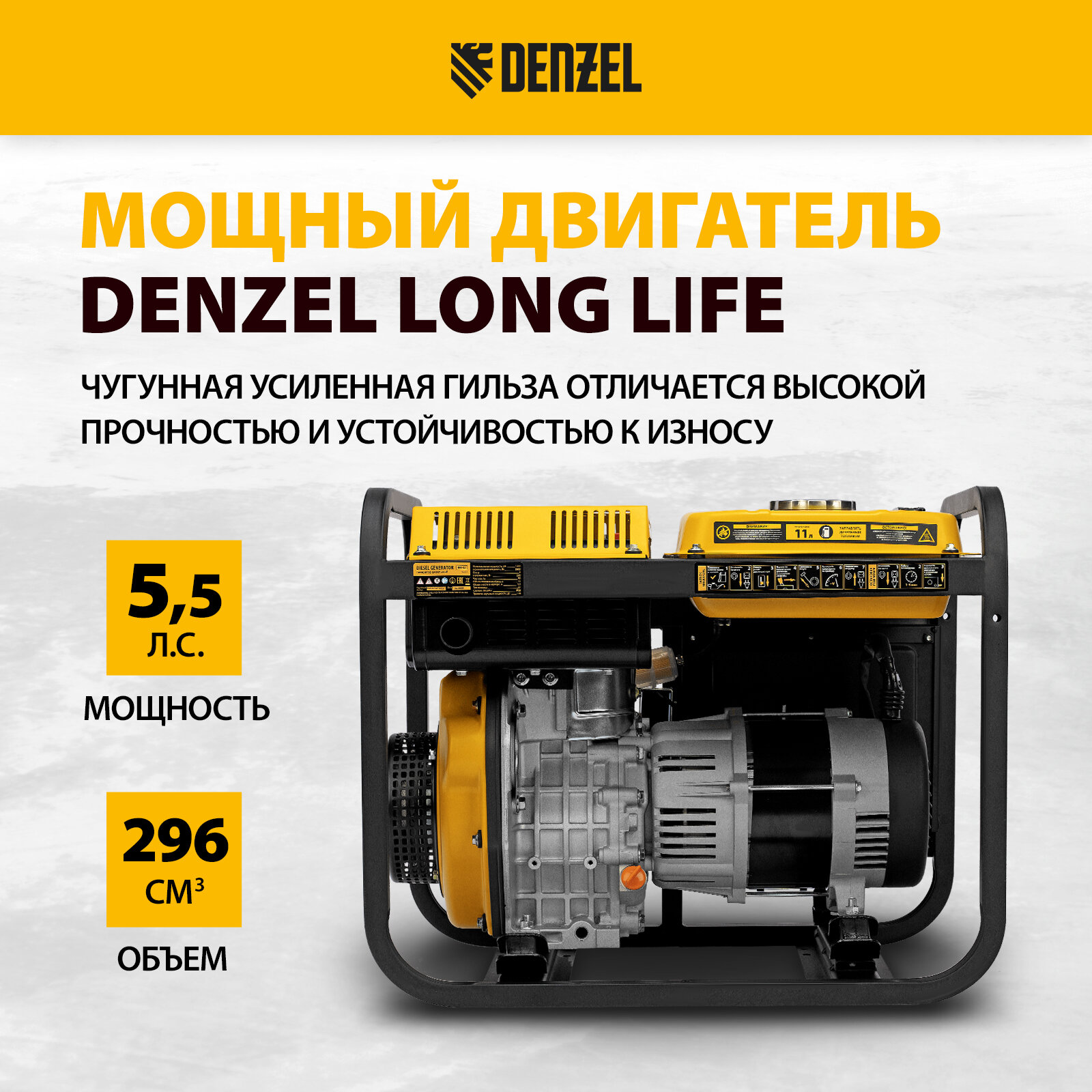 DENZEL (Дензель) представляет собой модель генератора, работающего на дизельном топливе. Он имеет ручной стартер и позволяет снабжать энергией однофазные электроприборы в случаях отключения света или перебоев в электричестве. К нему можно подключать осветительные приборы, бытовую технику. А также у него есть клеммы для зарядки автомобильного аккумулятора и USB-разъем – для мобильных устройств.