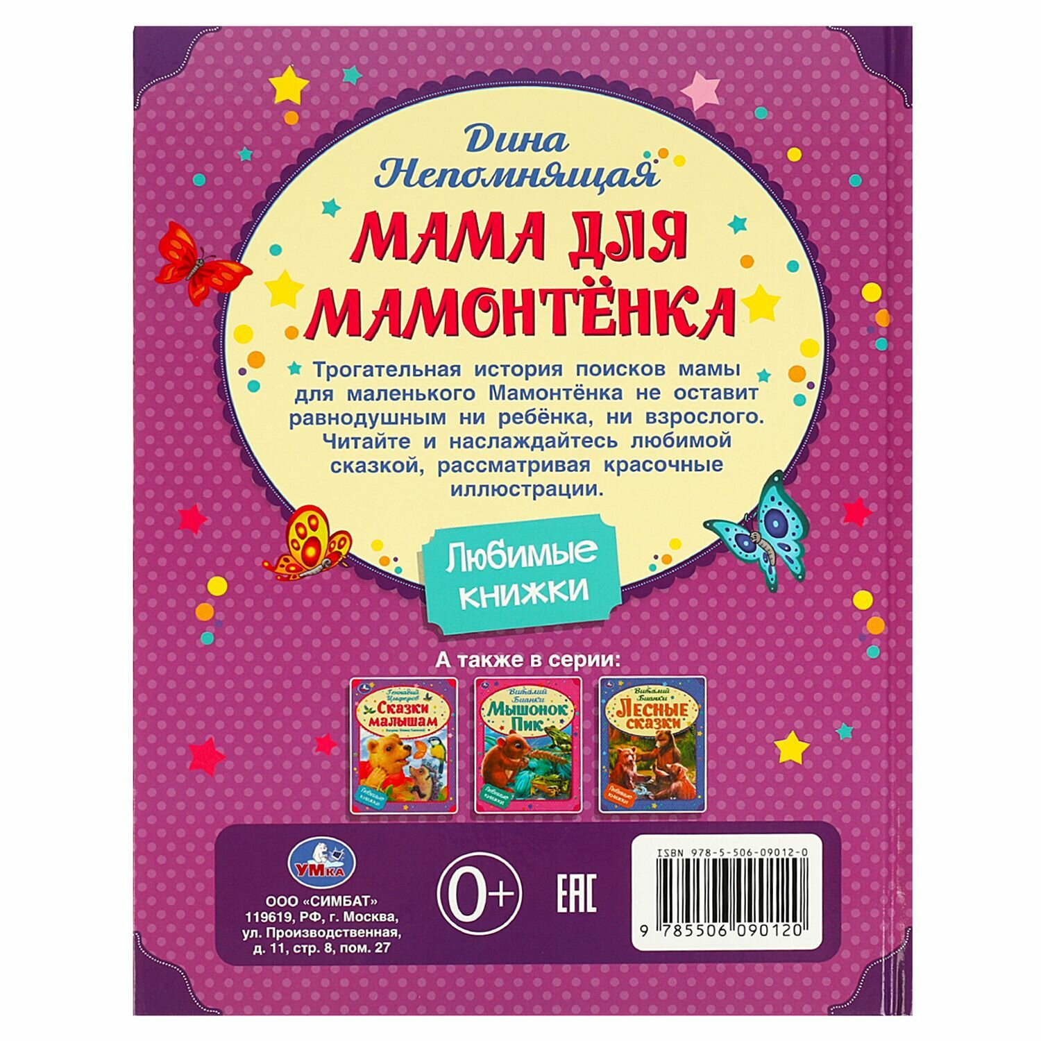 Представляем вам настоящий сказочный клад – книгу Дины Непомнящей Мама для Мамонтёнка. Это волшебное путешествие в мир фантазии и развития для ваших малышей! В чем преимущества этой удивительной книги для детей? Вместе с Диной Непомнящей и Мамонтёнком ваш ребенок отправится в захватывающее приключение. Яркие и непредсказуемые события подарят множество радостных моментов. Для комфортного чтения каждая страничка книги выполнена с крупным шрифтом. Это способствует легкости восприятия текста, даже для самых маленьких читателей. Изумительные картинки оживят любую страницу. Визуальное восприятие ребенка разовьется, погружая его в мир ярких иллюстраций. Надежный твёрдый переплёт оберегает книгу от повреждений. Это означает, что сказка о Дине и Мамонтёнке станет частью ваших воспоминаний на долгие годы. Какие навыки развивает детская книжка? Волшебный мир сказок улучшает у ребенка образное мышление, позволяя ему представлять себе удивительные приключения. Яркие и красочные иллюстрации помогают развивать визуальное восприятие и воображение маленького читателя. Чтение вместе с ребенком требует внимания, а сюжеты сказок развивают память, запоминая истории и персонажей. Обсуждение прочитанного с родителями улучшает навыки вербального общения и обогащает словарный запас. Книжка идеально подходит для вас, заботливых мам, женщин и девушек от 20 до 45 лет, у которых есть маленькие исследователи, целиком посвященные увлекательному обучению и веселым приключениям. Детские книжки - идеальный подарок как для мальчиков, так и для девочек и прекрасное дополнение на любой праздник: 8 Марта, Новый Год, День Рождения, выпускной в детском саду и 23 Февраля. Не упустите шанс подарить своим детям чарующую книгу Мама для Мамонтёнка. Пусть каждая страница станет новым открытием, а каждый образ — навсегда полюбившимся персонажем вашего ребенка. Давайте вместе откроем дверь в волшебный мир чтения!