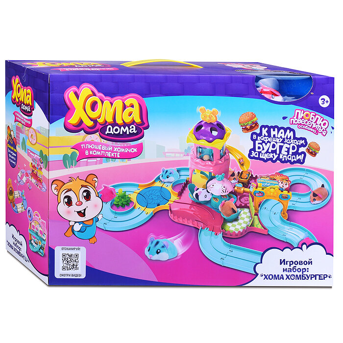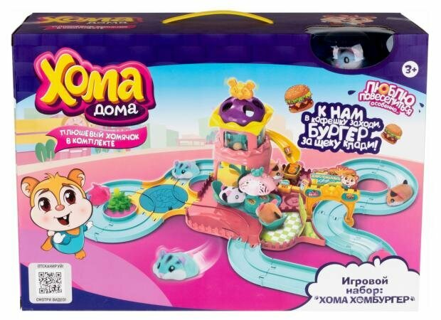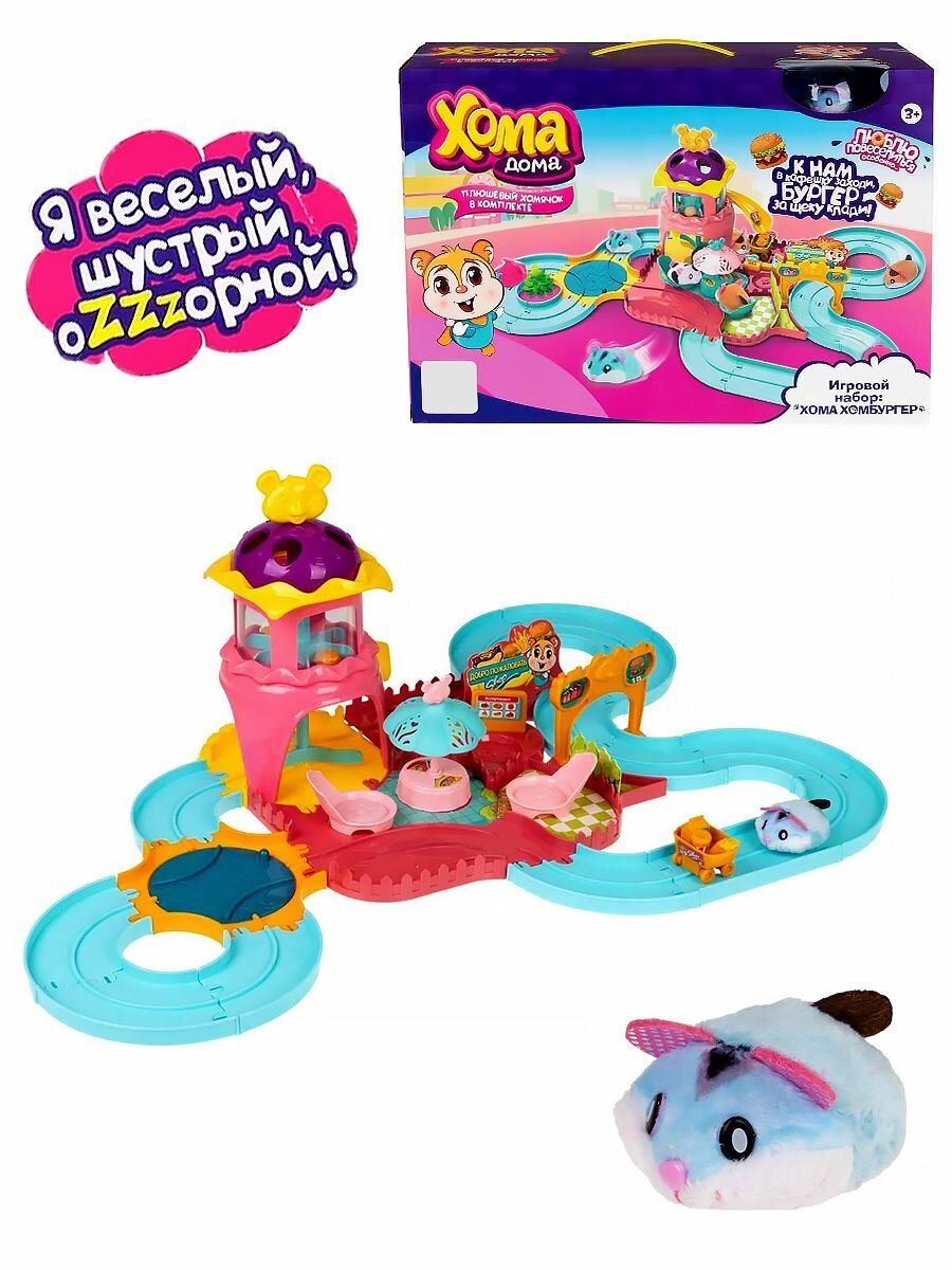 Игровой набор "Хома Дома. Хомбургер" с милым питомцем - хомячком в коробке размером 39,5х28х14,5 см. К нам в кафешку заходи, бургер за щеку клади! Помести бургер в ячейку, поверни ручку, опусти рычаг! Хомячок едет вперед вместе с корзиной, прикольно бегает в разные стороны, огибая препятствия. Объединив несколько наборов, можно создать целый хомячий мир! У набора удобная ручка для переноски и он отлично подойдет для подарка на любой праздник для детей от 3-х лет. Цвет хомячка в ассортименте.
