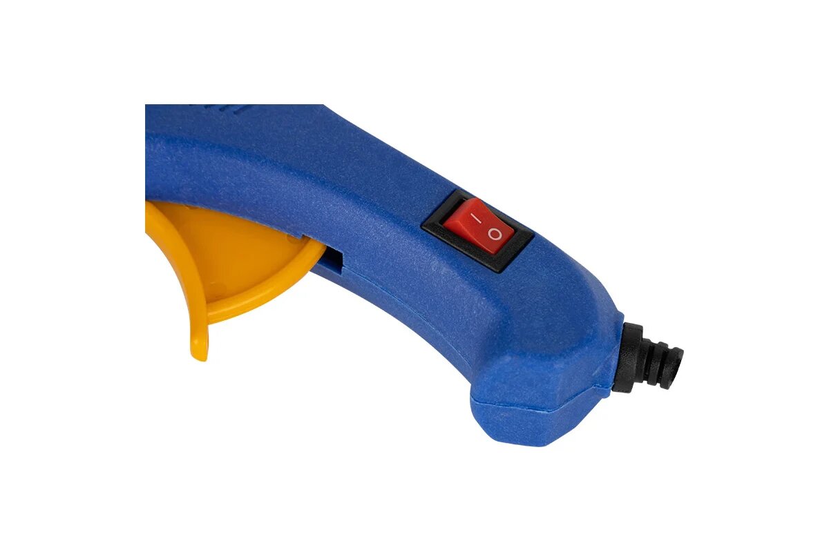 С кнопкой включения. Система защиты от капель. Откидная подставка для возможности поставить прибор в перерывах между работой по склеиванию. Длина шнура питания: 120 см. Назначение: прибор предназначен для склейки дерева, пластика, металла, стекла, керамики, линолеума, пенопласта, а так же фиксации с помощью клея различных объектов на картоне, бумаге и текстиле и т.д. Может использоваться при работах по герметизации.