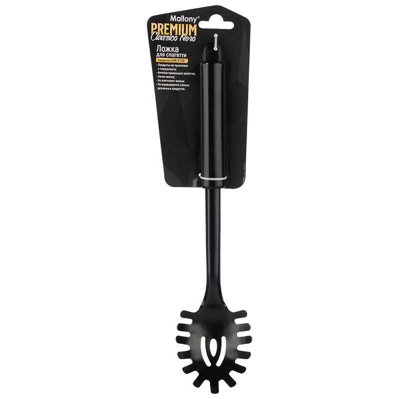 Ложка для спагетти CLASSICO NERO из нержавеющей стали, цвет - черный, non-stick (раб часть)Материал: раб часть 430 сталь, ручка 410 сталь, Размер: 31*6,5 см. Картонная подложка. Овальная ручка.
