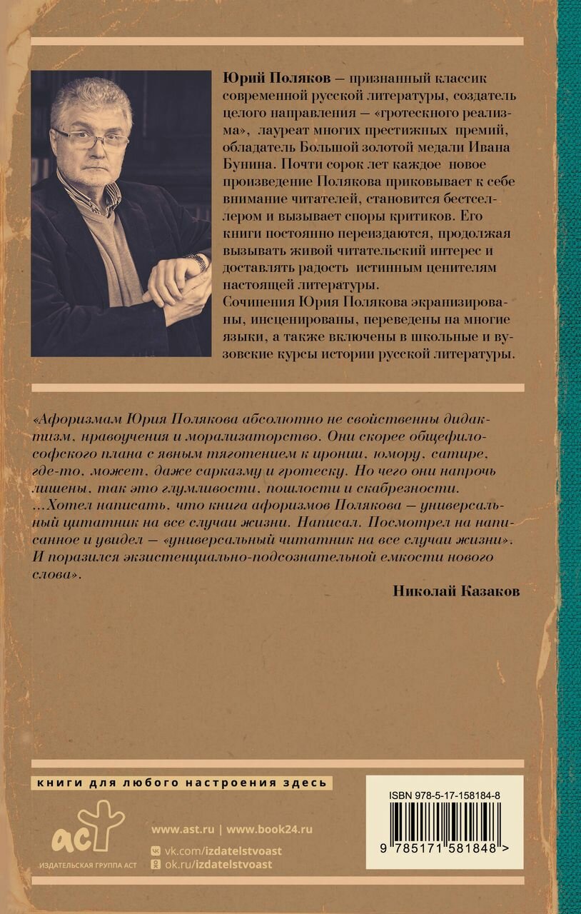 …Хотел написать, что книга афоризмов Полякова – универсальный цитатник на все случаи жизни. Написал. Посмотрел на написанное и увидел – "универсальный читатник на все случаи жизни". И поразился экзистенциально-подсознательной емкости нового слова".