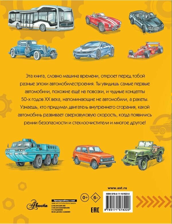 Эта книга, словно машина времени, перенесёт вас через несколько сотен лет и покажет эволюцию автомобилей. Вы увидите, как менялись механизмы со времён парусной повозки Симона Стевина и "самокатки" Кулибина до наших дней. Узнаете, когда появились зеркала заднего вида и ремни безопасности, чем отличались концепты 50-х годов ХХ века. Самые разные — легковые и грузовые, коллекционные, военные, спортивные и сверхзвуковые — автомобили и множество любопытных фактов о их создании и создателях представлены в этой книге.