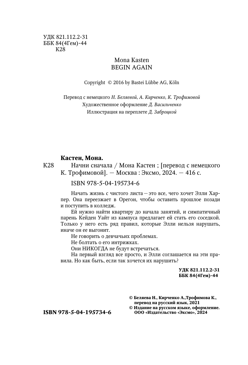 Книга: Начни сначала (Мона Кастен); Эксмо, Like Book, Редакция 1, 2024