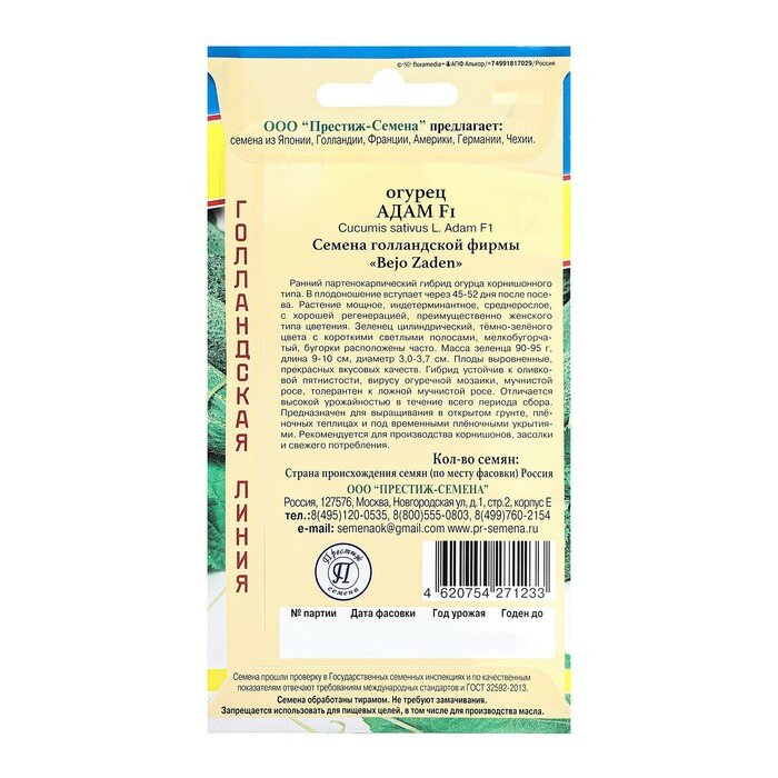 Сервис сравнения цен СкидкаГИД предлагает сравнить цены на товар «Семена овощей огурец Адам F1 5 шт. ПРЕСТИЖ СЕМЕНА»