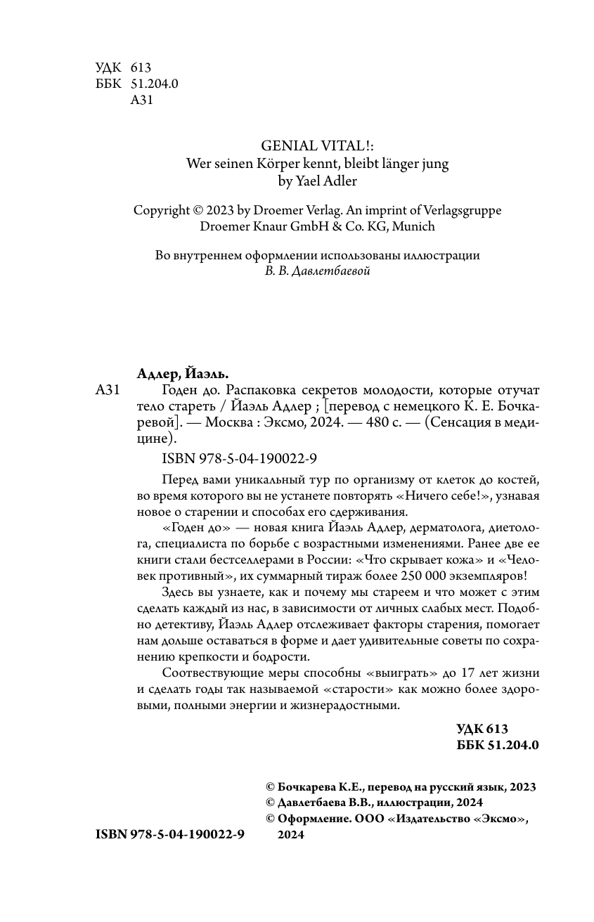 Годен до. Распаковка секретов молодости которые отучат тело стареть (Адлер Йаэль); ООО "Издательство "Эксмо", 2024