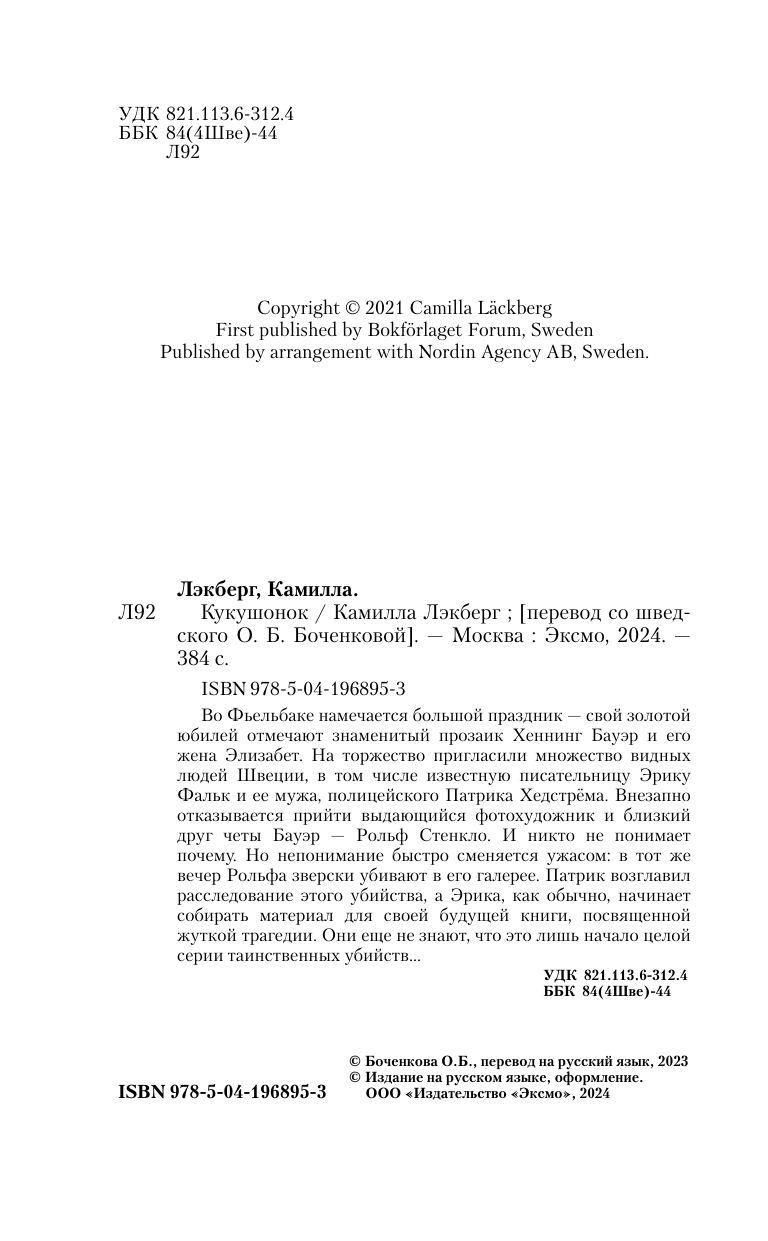 Книга: Кукушонок (Камилла Лэкберг); Эксмо, Редакция 1, 2024