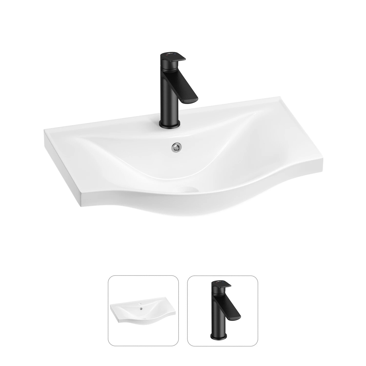 | Дополнительная информация | полукруглая раковина белого глянцевого цвета, смеситель в цвете матовый черный |