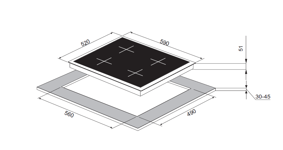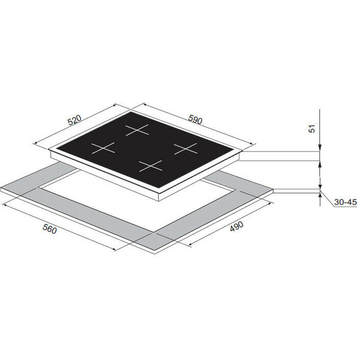 | Размеры ниши для встраивания (ШxГ) | 560 х 490 мм |