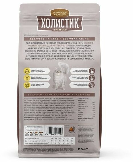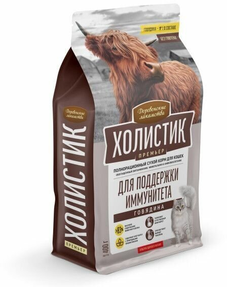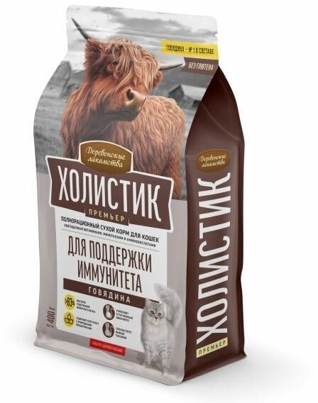 ДЕРЕВЕНСКИЕ ЛАКОМСТВА Холистик Премьер Корм сух.говядина д/поддержки иммунитета д/кошек 2кг (79213164)