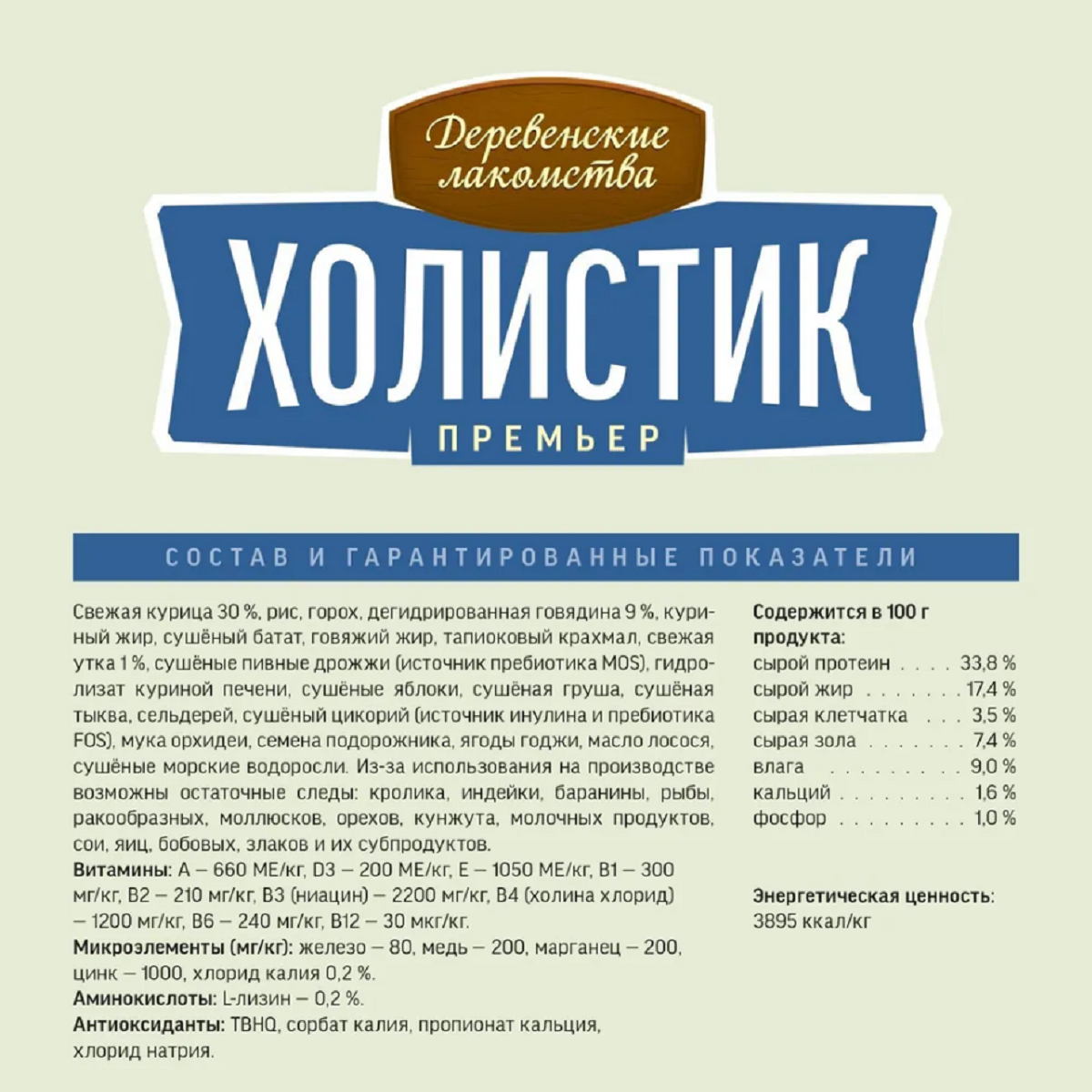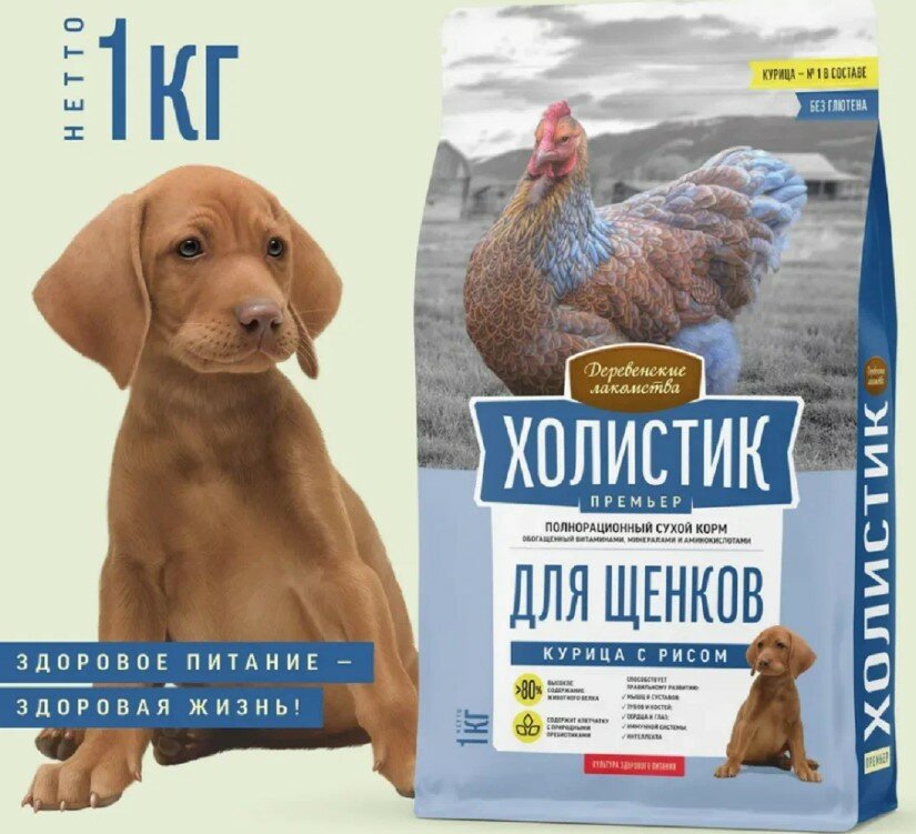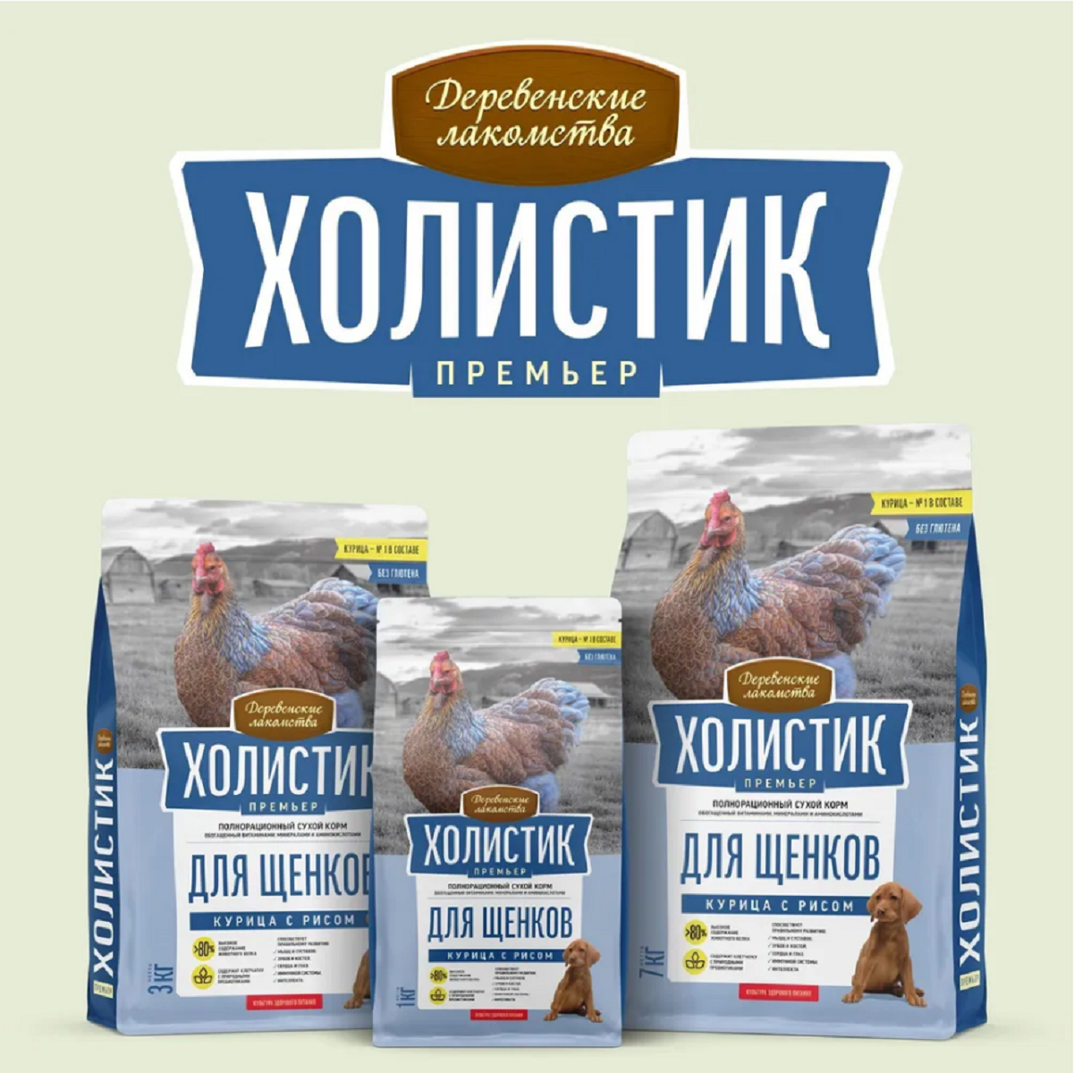 ДЕРЕВЕНСКИЕ ЛАКОМСТВА Холистик Премьер Корм сух.курица с рисом д/щенков 1кг (79213362)