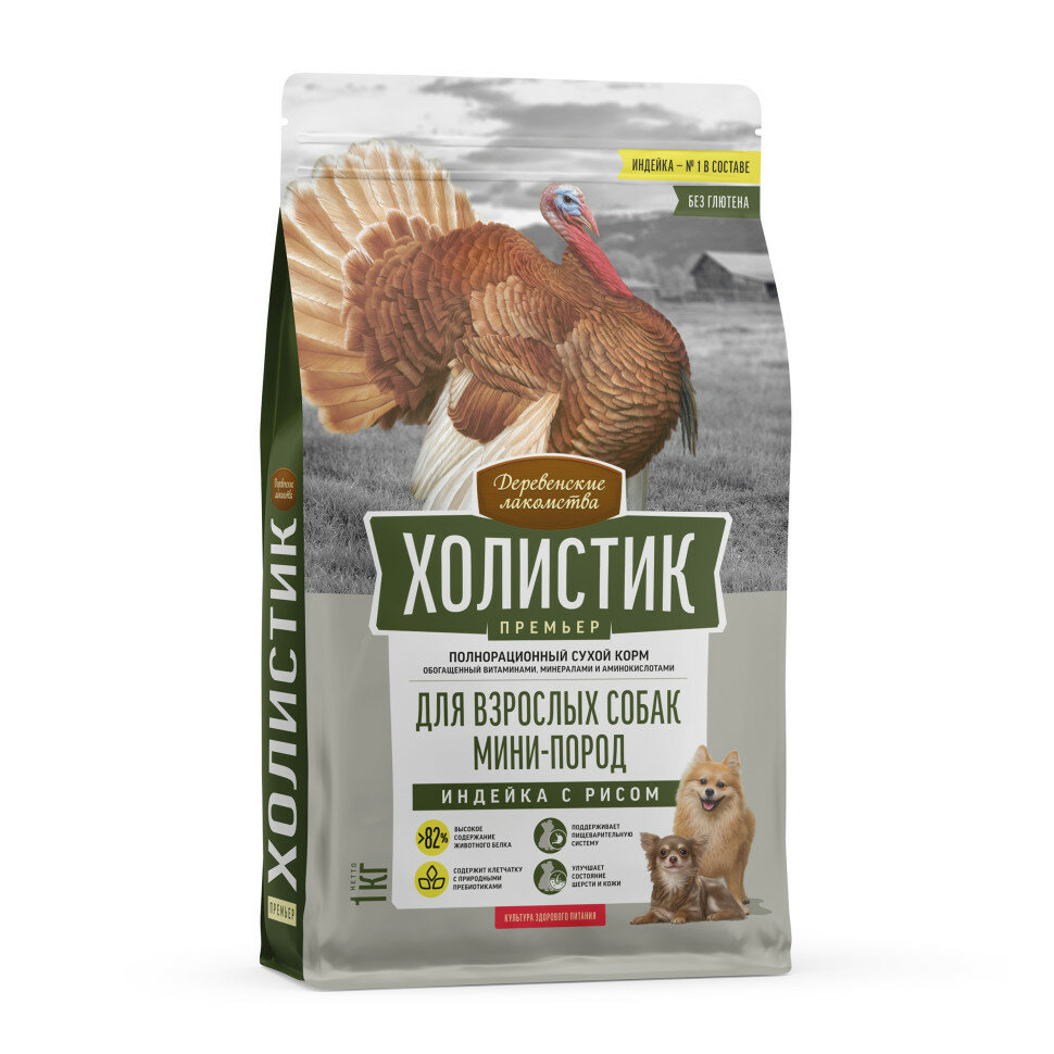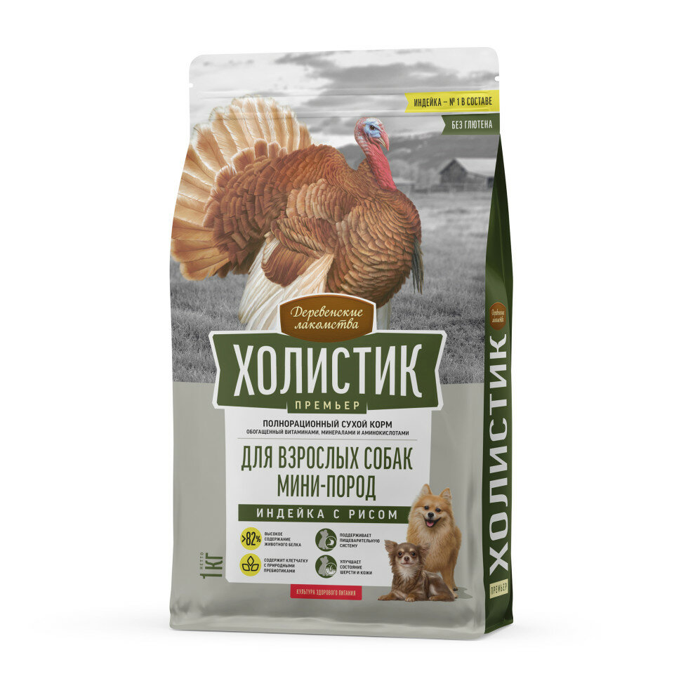 ДЕРЕВЕНСКИЕ ЛАКОМСТВА Холистик Премьер Корм сух.индейка с рисом д/собак мини-пород 1кг (79211665)