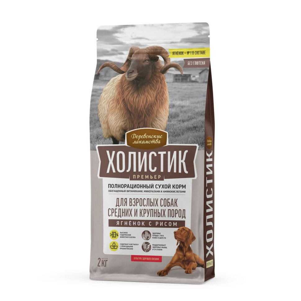 ДЕРЕВЕНСКИЕ ЛАКОМСТВА Холистик Премьер Корм сух.ягненок с рисом д/собак средн./крупн.пор.2кг (79213881)