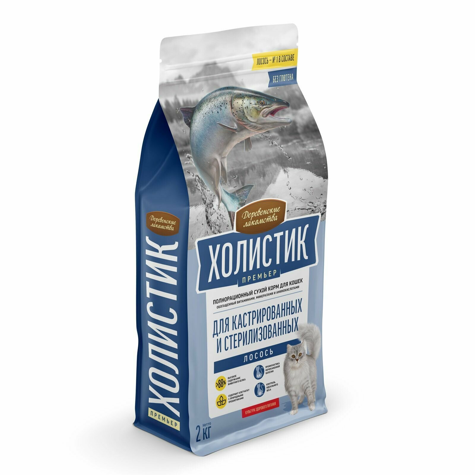 ДЕРЕВЕНСКИЕ ЛАКОМСТВА Холистик Премьер Корм сух.лосось д/стерилизованных кошек 2кг (79213249)
