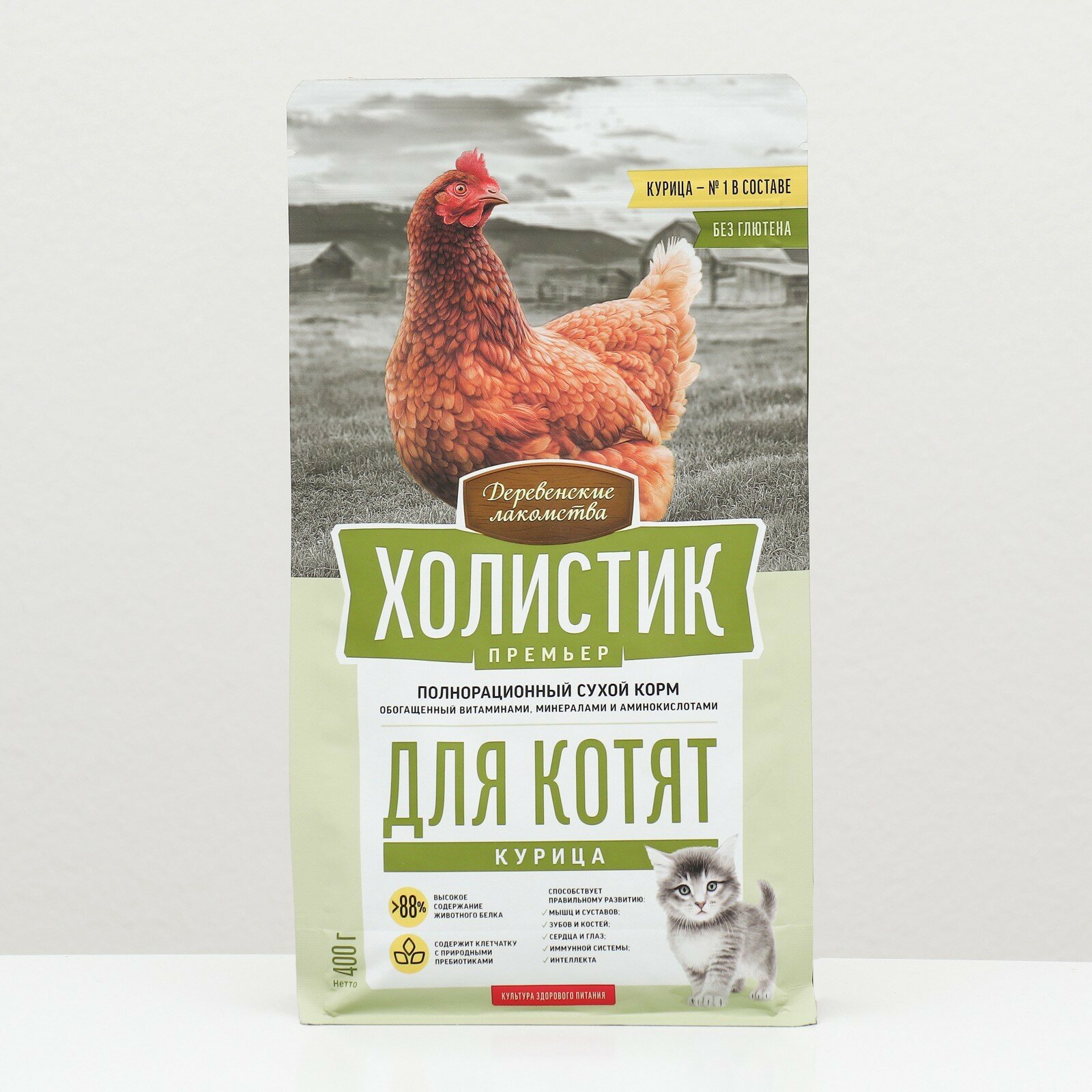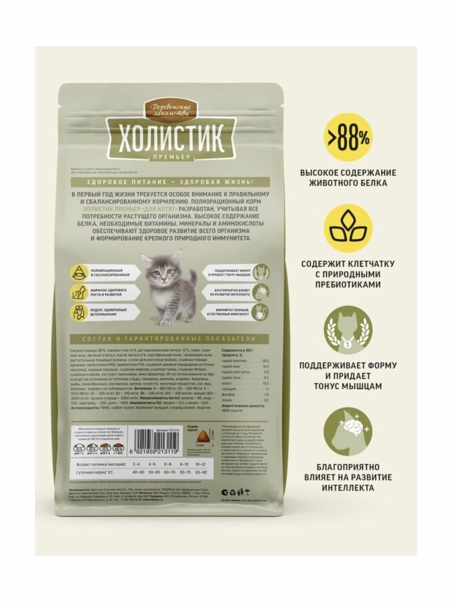 ДЕРЕВЕНСКИЕ ЛАКОМСТВА Холистик Премьер Корм сух.курица д/котят 400г (79213119)