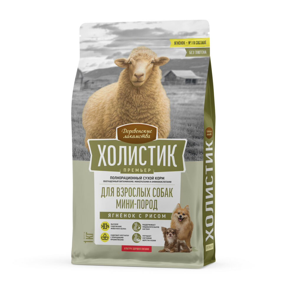 ДЕРЕВЕНСКИЕ ЛАКОМСТВА Холистик Премьер Корм сух.ягненок с рисом д/собак мини-пород 1кг (79213331)