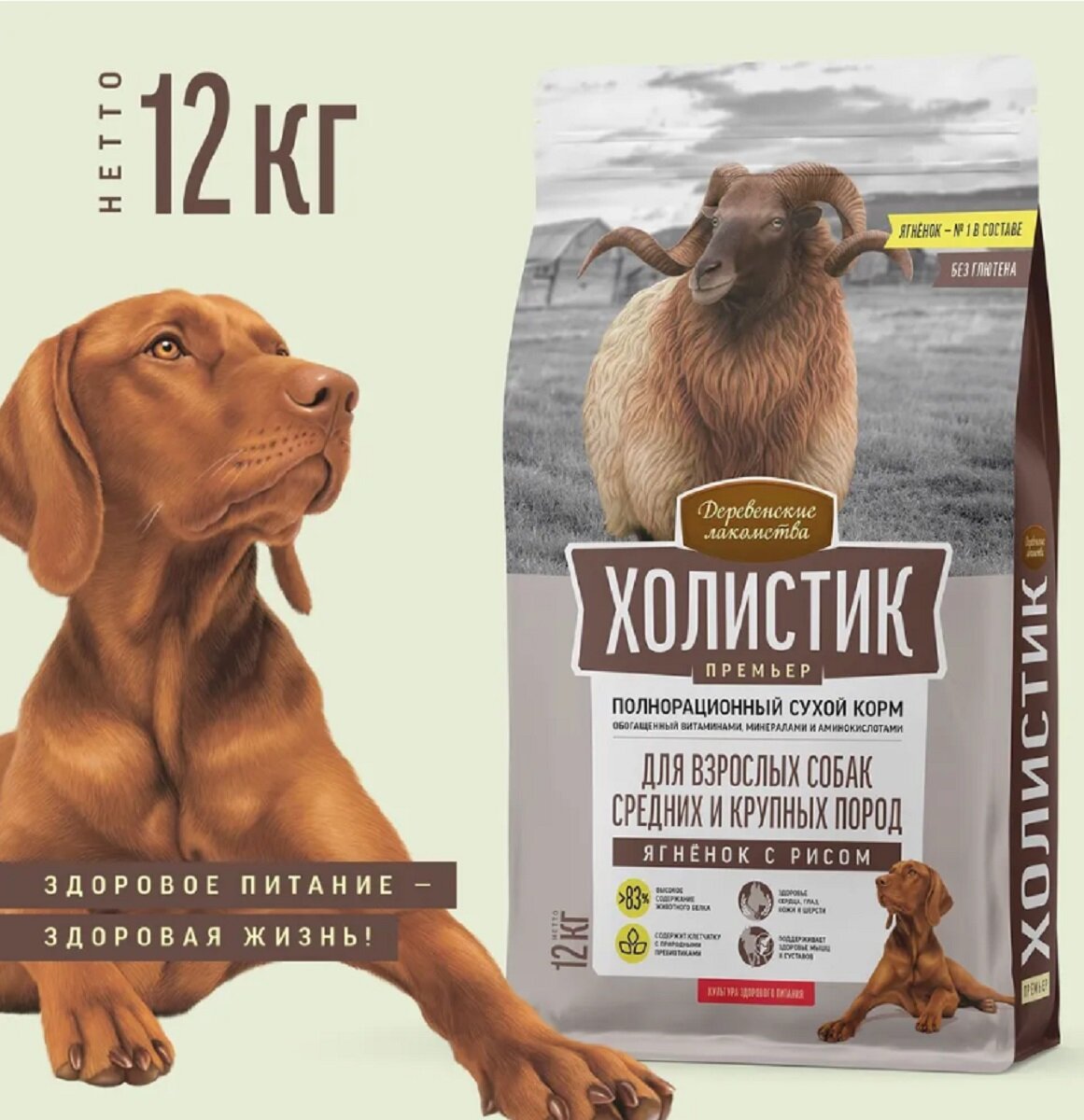 ДЕРЕВЕНСКИЕ ЛАКОМСТВА Холистик Премьер Корм сух.ягненок с рисом д/собак средн./круп.пор.12кг (79213904)