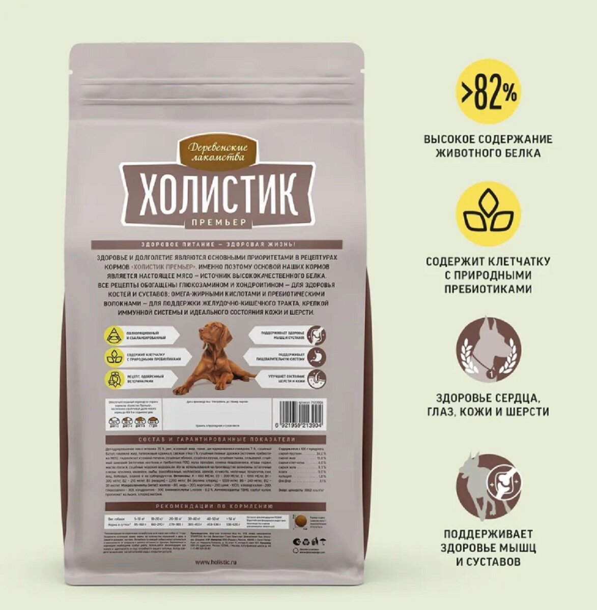 Сбалансированный, натуральный, полнорационный корм «Деревенские лакомства Холистик Премьер» обеспечивает питомцев всем необходимым для поддержания здоровья на каждом этапе жизни.