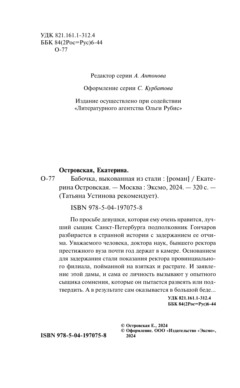 Бабочка выкованная из стали (Островская Екатерина Николаевна); ООО "Издательство "Эксмо", 2024