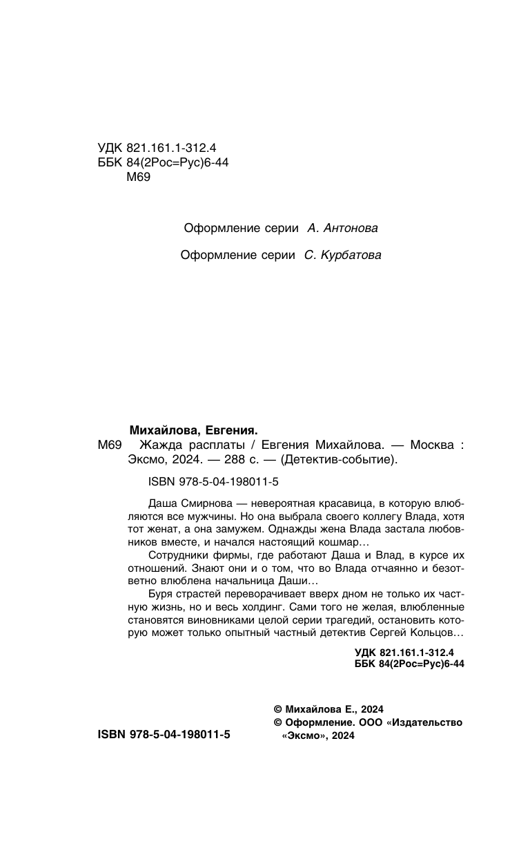 Книга: Жажда расплаты (Евгения Михайлова); Эксмо, 2024