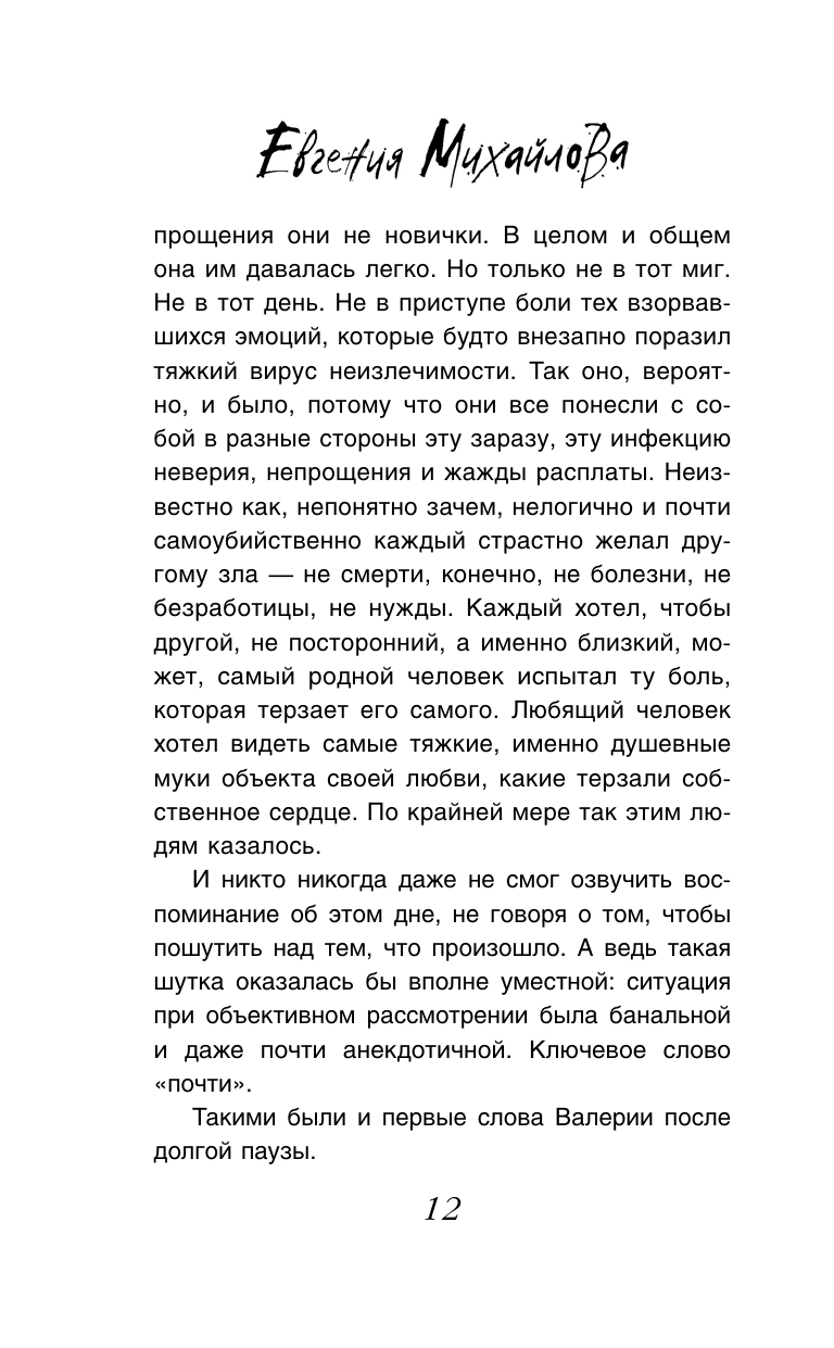 Даша Смирнова - невероятная красавица, в которую влюбляются все мужчины. Но она выбрала своего коллегу Влада, хотя тот женат, а она замужем. Однажды жена Влада застала любовников вместе, и начался настоящий кошмар. Сотрудники фирмы, где работают Даша и Влад, в курсе их отношений. Знают они и о том, что во Влада отчаянно и безответно влюблена начальница Даши. Буря страстей переворачивает вверх дном не только их частную жизнь, но и весь холдинг. Сами того не желая, влюбленные становятся виновниками целой серии трагедий, остановить которую может только опытный частный детектив Сергей Кольцов. В прошлом Евгения Михайлова работала журналистом и провела немало журналистских расследований, а теперь сочиняет преступления сама. Но невыдуманные жизненные истории по-прежнему служат для Евгении вдохновением, и именно на реальных событиях она основывает свои сюжеты. Каждый ее остросюжетный роман - это настоящий детектив-событие.