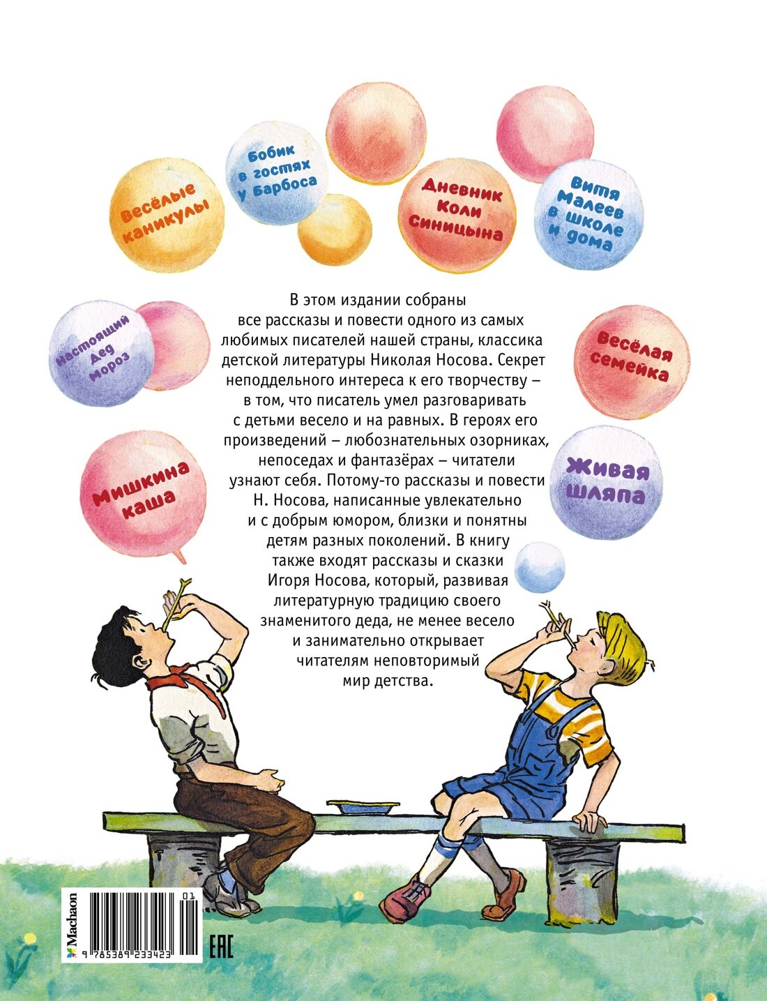 Этот сборник подготовлен специально к 115-летнему юбилею замечательного писателя Николая Николаевича Носова – классика детской литературы, чьи произведения по праву входят в золотой фонд русского культурного наследия. Его книги издаются с 1960-х годов, но по-прежнему интересны современным детям, потому что Носов обладал удивительным талантом разговаривать с детьми о важном весело и без нравоучений. Его герои – любознательные озорники, непоседы и фантазёры, которым интересно всё на свете. Порой они шалят, хулиганят, не слушаются взрослых, но они умеют дружить, готовы прийти друг другу на помощь, а главное – они стоят горой за правду, честность и справедливость. Рассказы и сказки Игоря Носова, также вошедшие в этот том, – своего рода эстафетная палочка, которую подхватил внук, чтобы продолжить дело своего знаменитого деда. Его произведения, развивая литературную традицию, по-своему открывают читателям неповторимый мир детства.