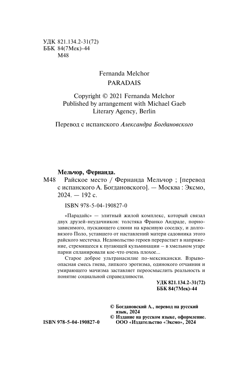 Книга: Райское место (Фернанда Мельчор); Эксмо, Inspiria, Редакция 1, 2024