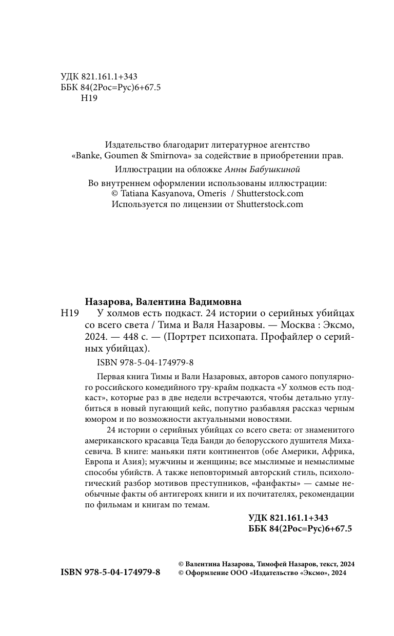 У холмов есть подкаст. 24 истории о серийных убийцах со всего света (Назарова Валентина Вадимовна, Назаров Тимофей Вадимович); Эксмо, 2024