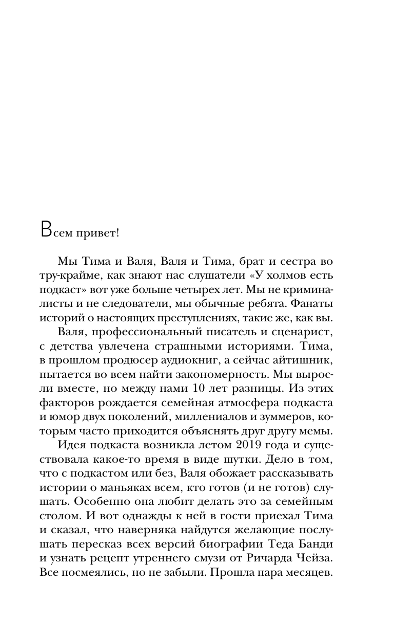 Первая книга Тимы и Вали Назаровых, авторов самого популярного российского комедийного тру-крайм подкаста «У холмов есть подкаст».