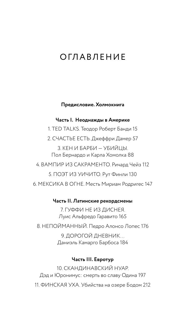 Перед вами результат кропотливого изучения материалов, на что способны только настоящие фанаты тру-крайма. Это вовсе не академический справочник и не подборка веселых (и не очень!) баек полицейских на пенсии, решивших поделиться воспоминаниями об увиденной жести. Это сборник тру-крайм историй, написанных одними фанатами для других. Мы постарались сделать книгу такой же, как наш подкаст: местами смешной, местами шокирующей, но никогда не скучной и очень уютной». — Тима и Валя