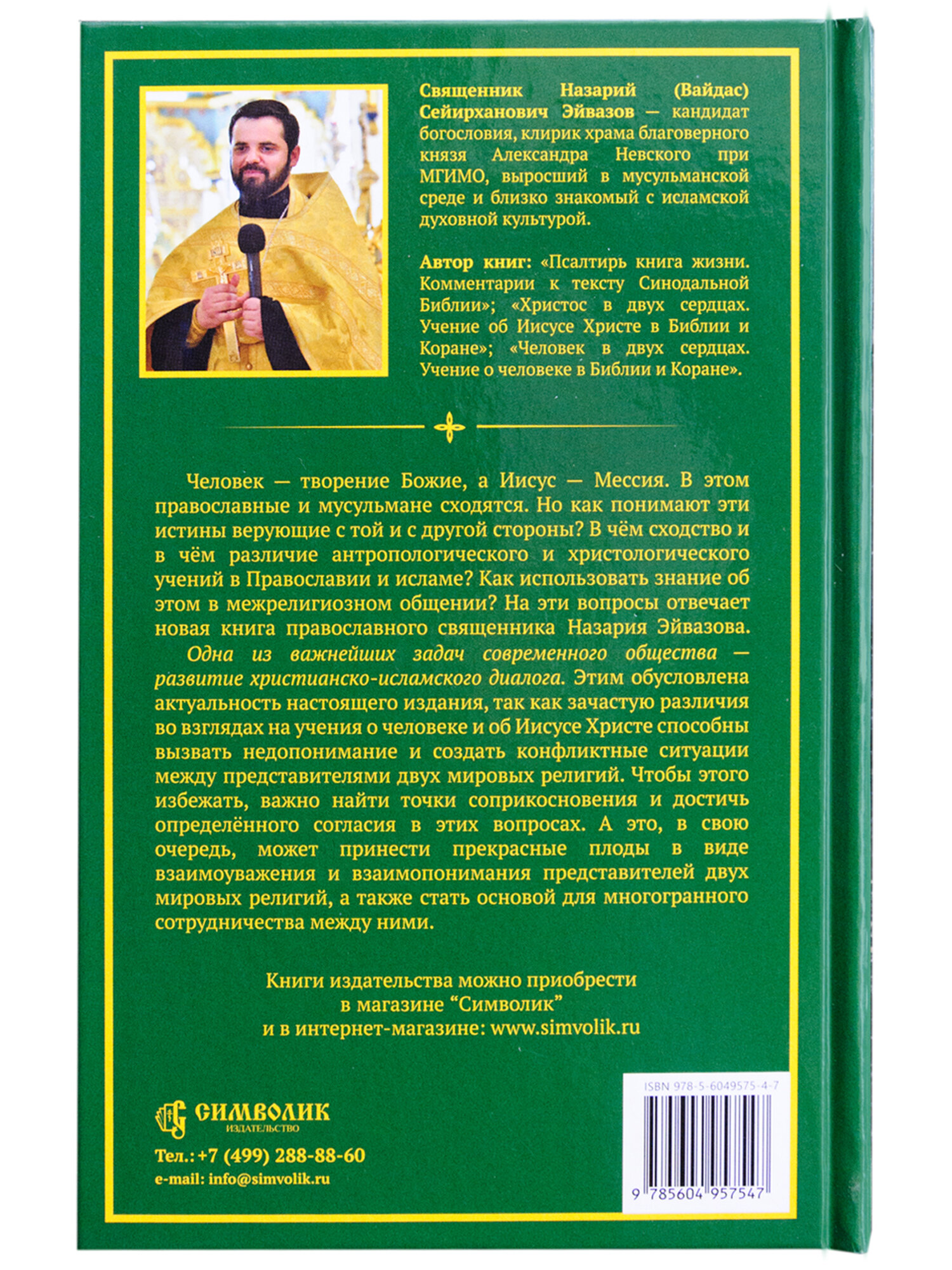 Человек — творение Божие, а Иисус — Мессия. В этом православные и мусульмане сходятся. Но как понимают эти истины верующие с той и с другой стороны? В чём сходство и в чём различие антропологического и христологического учений в Православии и исламе? Как использовать знание об этом в межрелигиозном общении? На эти вопросы отвечает новая книга православного священника Назария Эйвазова, кандидата богословия, клирика храма благоверного князя Александра Невского при МГИМО, выросшего в мусульманской среде и близко знакомого с исламской духовной культурой. Одна из важнейших задач современного общества — развитие христианско-исламского диалога. Этим обусловлена актуальность настоящего издания, так как зачастую различия во взглядах на учения о человеке и об Иисусе Христе способны вызвать недопонимание и создать конфликтные ситуации между представителями двух мировых религий. Чтобы этого избежать, важно найти точки соприкосновения и достичь определённого согласия в этих вопросах. А это, в свою очередь, может принести прекрасные плоды в виде взаимоуважения и взаимопонимания представителей двух мировых религий, а также стать основой для многогранного сотрудничества между ними.
