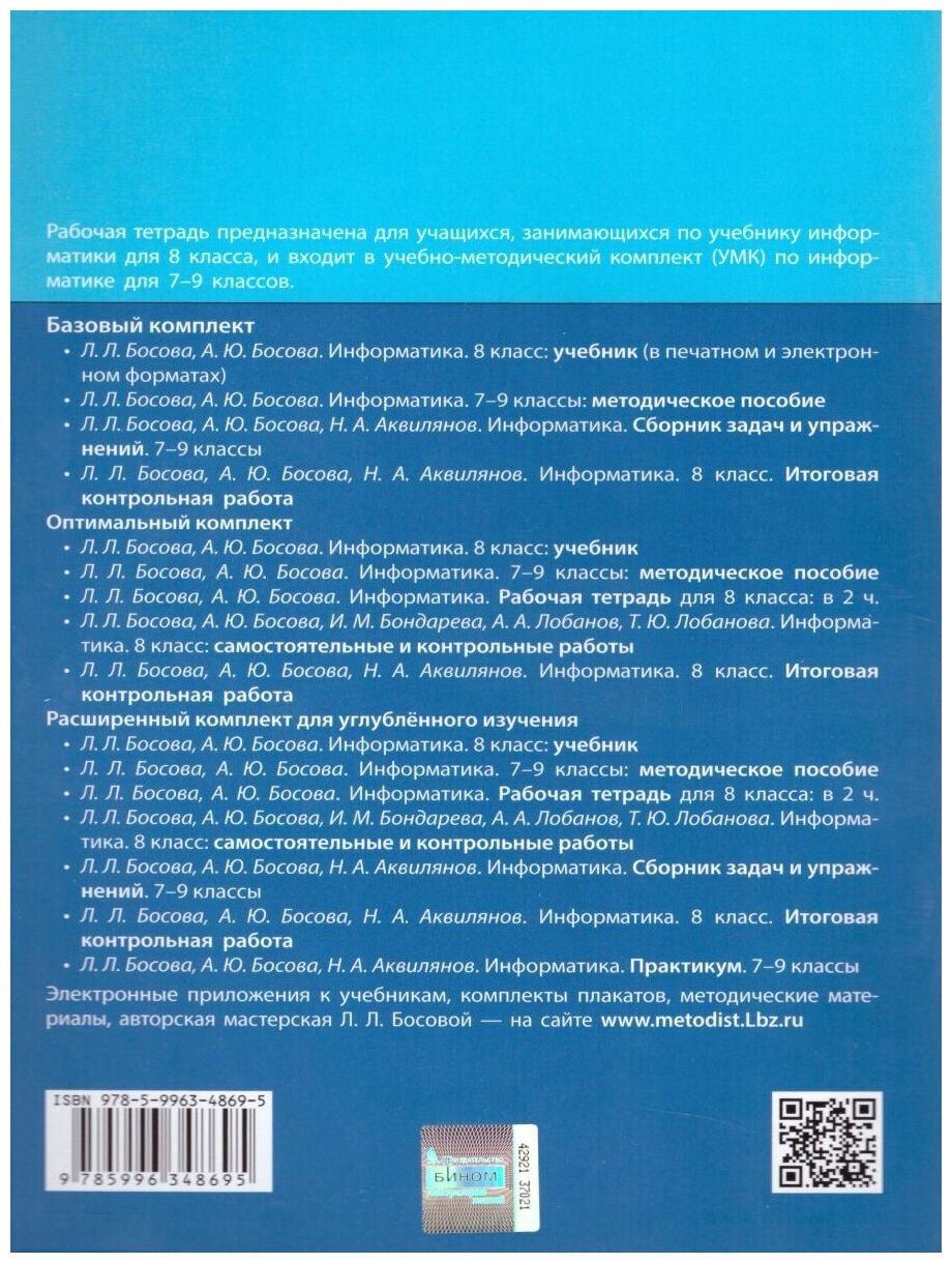 Информатика. 8 класс. Рабочая тетрадь в 2 частях. Часть 2 (комплект из 2 книг) (Босова Людмила Леонидовна; Босова Анна Юрьевна); Бином/Просвещение, 2022