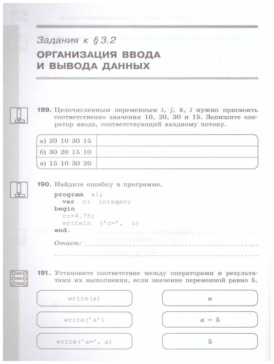 Рабочая тетрадь для 8 класса наряду с учебником в печатной и электронной формах, электронным приложением к учебнику и методическим пособием входит в состав УМК по информатике для основной школы (5-6, 7-9 классы). Содержит систему заданий базового, повышенного и высокого уровней сложности в виде рисунков, схем, таблиц, блок-схем на воспроизведение и практическое применение изучаемого материала; включает в себя в том числе задания исследовательского характера.