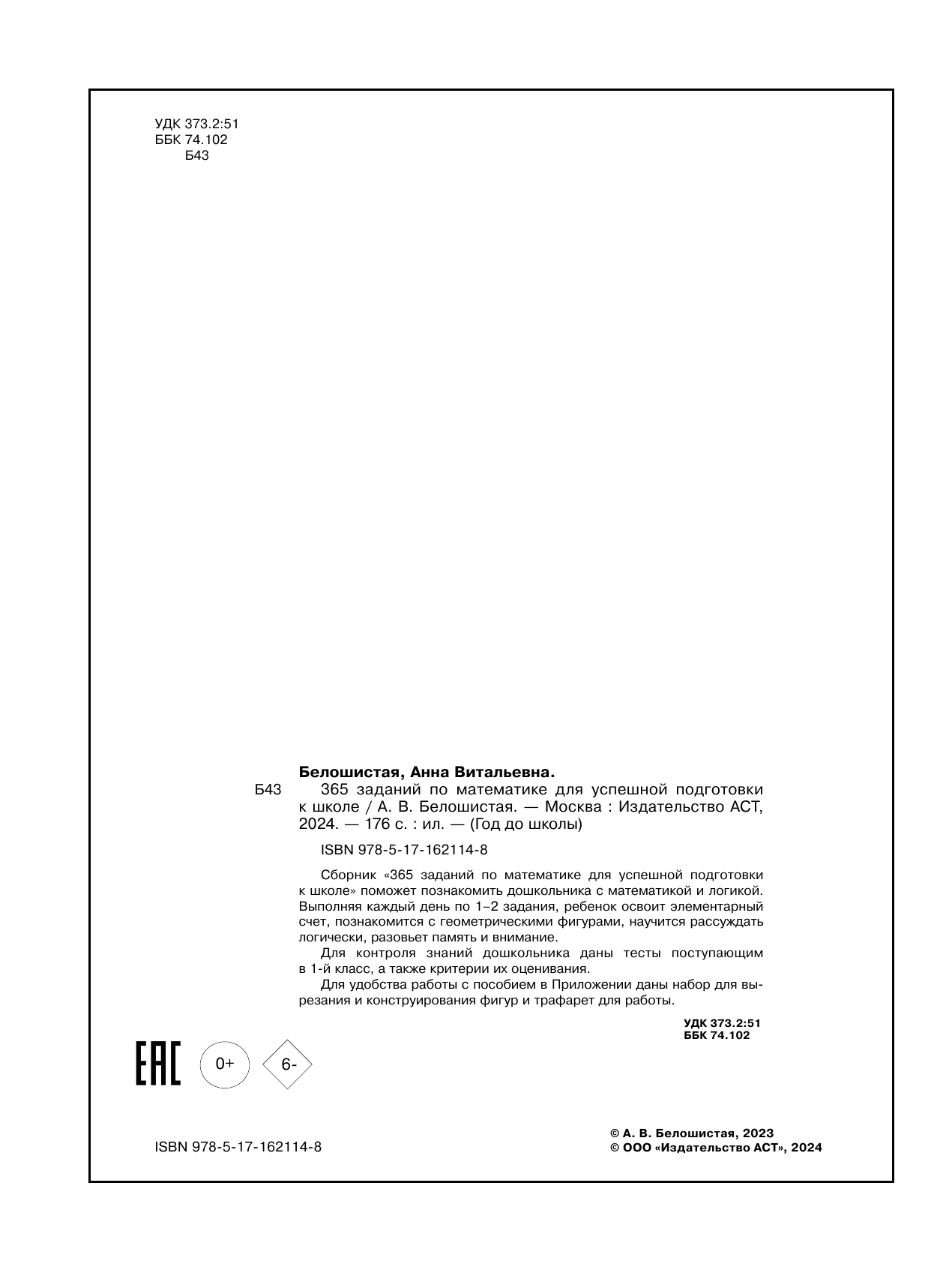 365 заданий по математике для успешной подготовки к школе (Анна Витальевна Белошистая); АСТ, 2024