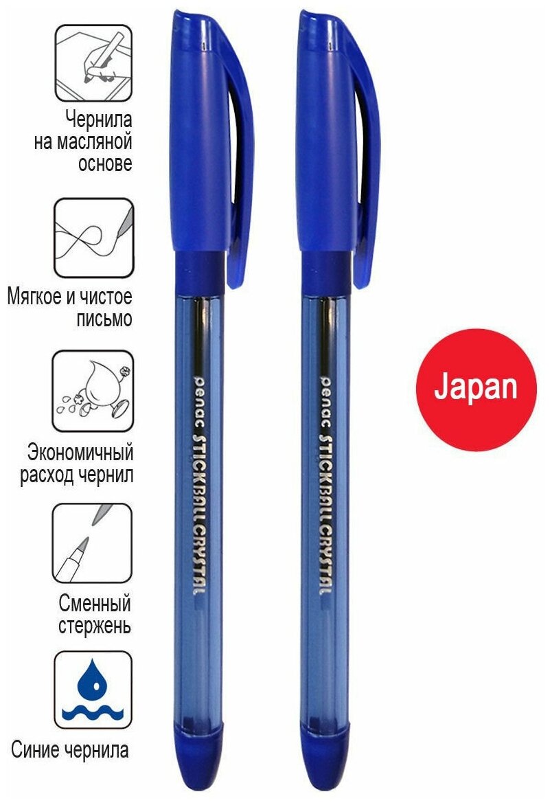 Ручки шариковые Penac Stick Ball Crystal с масляными чернилами синие 2 шт