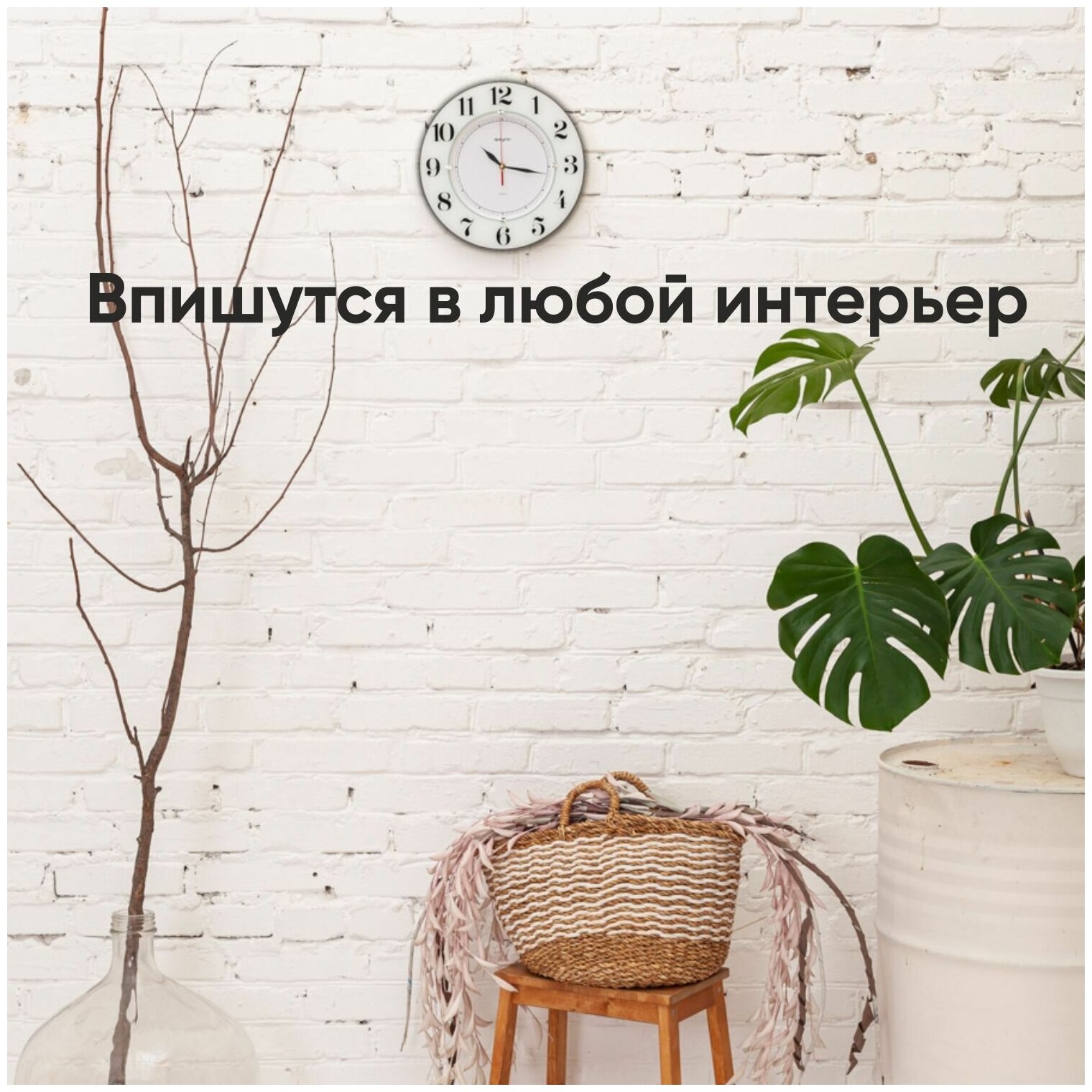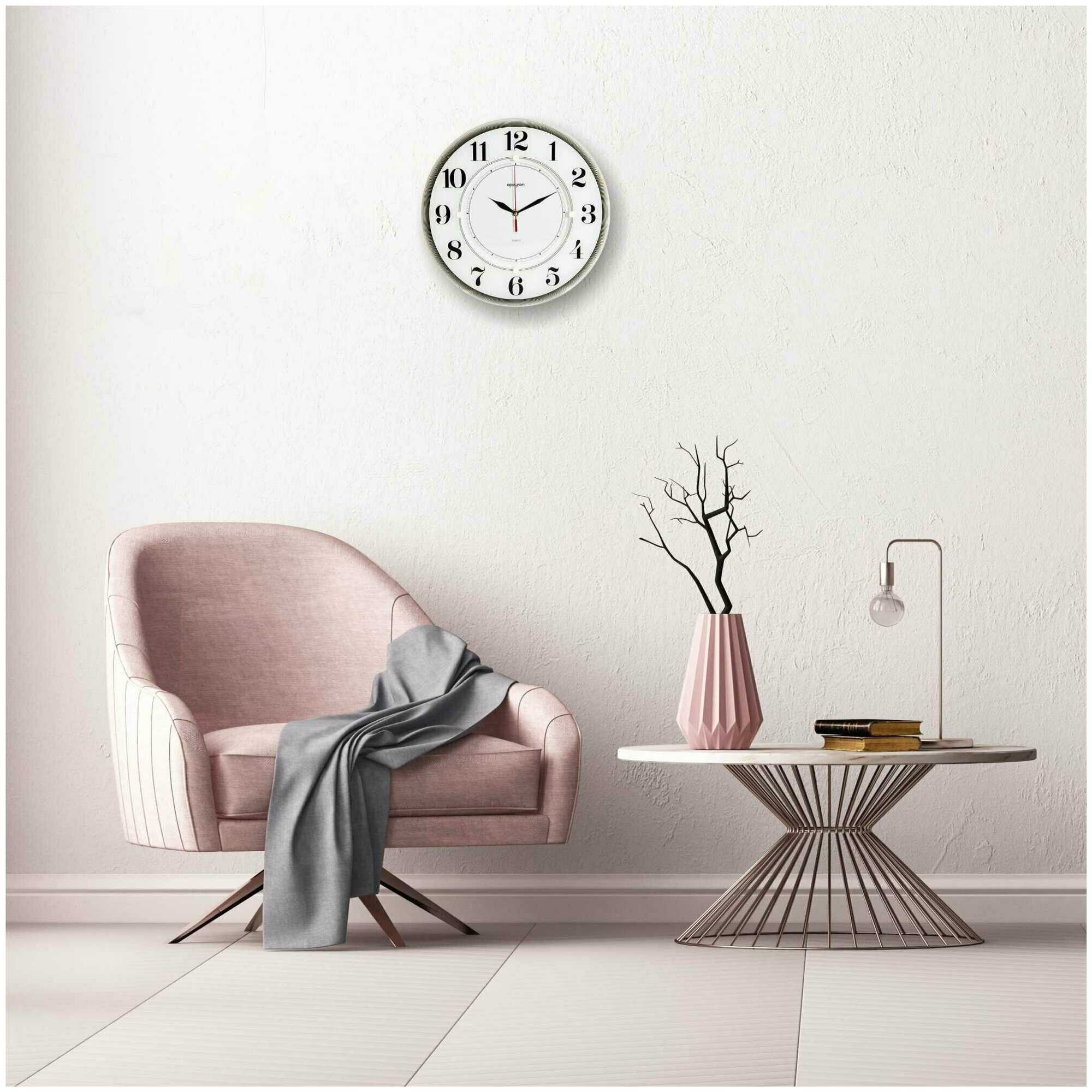 Настенные часы PL1712735 изготовлены в форме круга. Данная модель представляет собой часы с корпусом из качественного пластика. Лицевая сторона часов защищена минеральным стеклом. На циферблате белого цвета расположены арабские цифры и три стрелки. Часы сохранят тишину в помещении благодаря использованию бесшумного механизма плавного хода, который работает от батарейки стандарта АА (не входит в комплект).