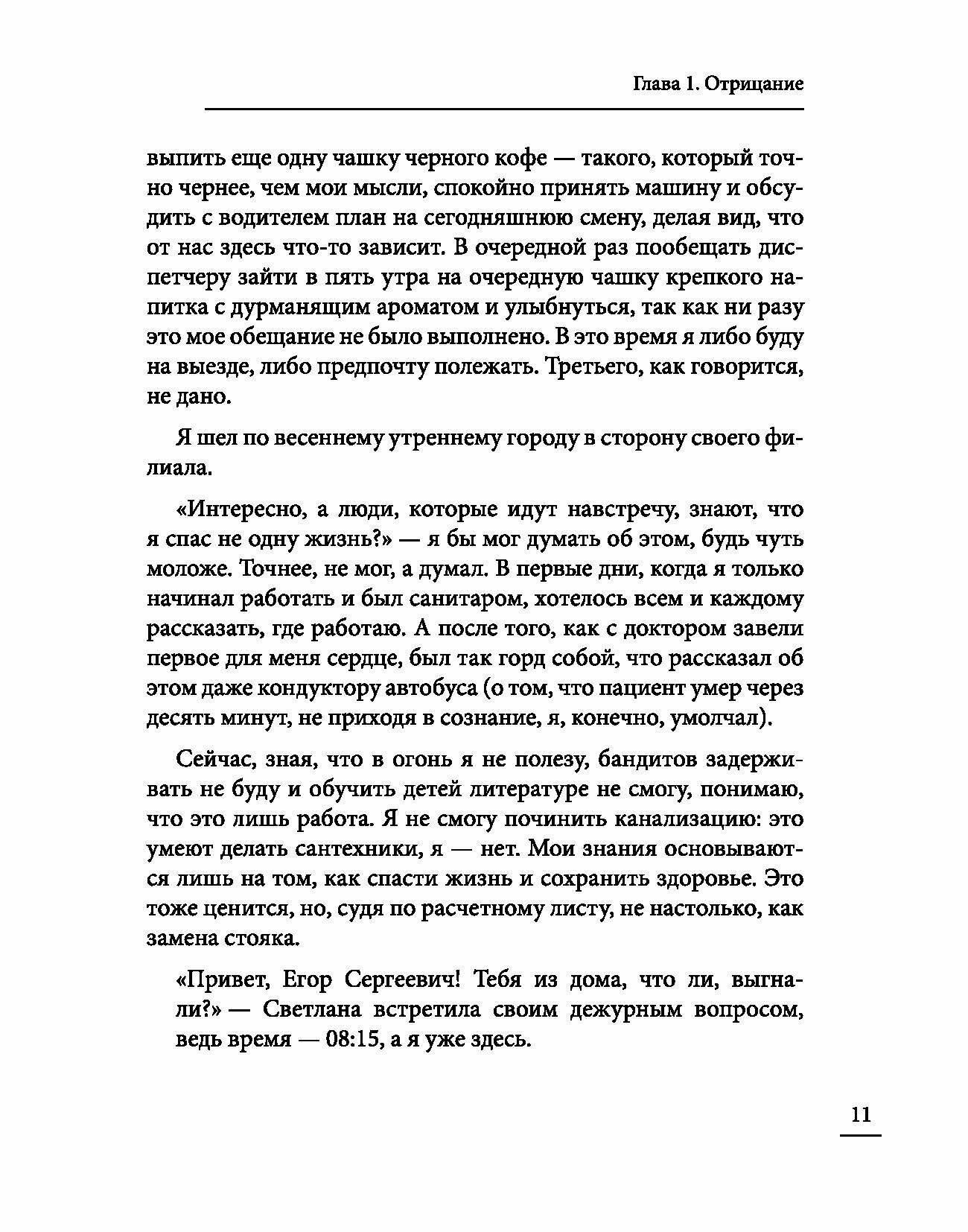 "Интересно, а люди, которые идут навстречу, знают, что я спас не одну жизнь? " - я бы мог думать так, будь чуть моложе. Точнее, так и было. В первые дни, когда я только начинал работать и был санитаром, готов был каждому говорить, где работаю. А когда с доктором завели первое для меня сердце, был так горд собой, что рассказал даже кондуктору автобуса! То, что пациент умер через 10 минут, не приходя в сознание, я, конечно, не говорил. Сейчас, зная, что в огонь я не полезу, бандитов задерживать не буду и обучить детей литературе не смогу, понимаю, что это просто работа. Я всего лишь знаю, как спасти вашу жизнь и сохранить здоровье. С каждым годом нас, таких отважных и не задумывающихся о будущем своего физического и психологического здоровья, становится все меньше. Но те, кто до сих пор в строю, несут это бремя ради незнакомых людей. Бессонные ночи, угрозы, унижения, удары. Ради чего? Ради зарплаты, которая выше МРОТ на 10-15 тысяч? Нет. Все это для того, чтобы однажды на улице подошла женщина с пятилетним ребенком и сказала: "Вот, Петенька, благодаря этому человеку ты сегодня дышишь".