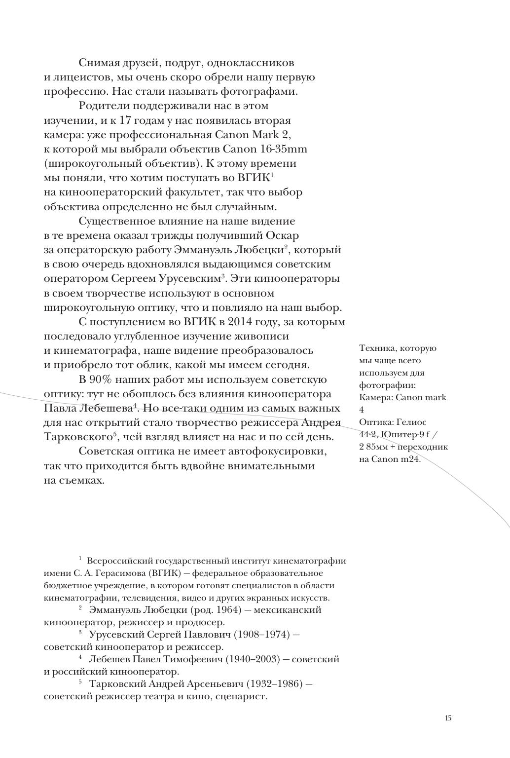 Перед вами книга, которая раскроет тайны любого творческого процесса и превратит ваше видение в настоящее искусство! Практикующие и звездные фотографы Полина и София Набока знают, что фотография - это не просто нажатие кнопки на камере. Это соединение с каждым элементом процесса: камерой, светом, цветом, моделями, командой и даже кризисами. Авторы книги собрали полезные советы, основываясь на своем пути и обучении в одном из лучших университетов кинематографии (ВГИК), показали схемы света и приемы ретуши, собрали уникальные кадры во время работы с такими звездными артистами, как Олег Меньшиков, Максим Матвеев, Равшана Куркова, Юлия Пересильд, Кристина Асмус и др., крупными российскими брендами и театрами. Благодаря емким и лаконичным интервью вы узнаете о том, как работать в команде во время любого творческого процесса, что помогает взаимодействовать фотографу и модели; как найти стиль и начать работать с крупными артистами и известными брендами. Не упустите возможность стать настоящим мастером своего дела и соединиться с миром фотографического искусства.