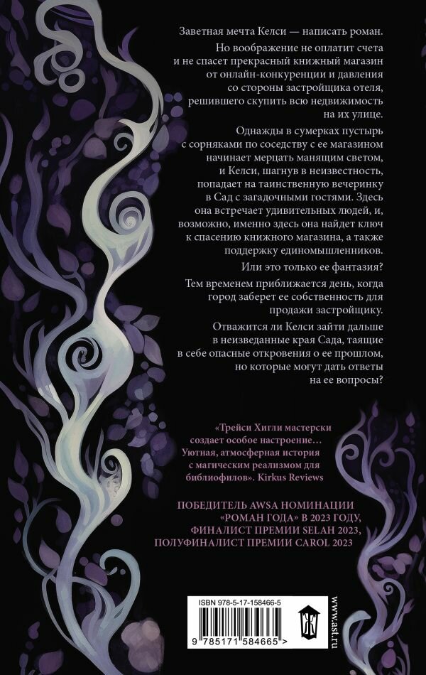 Заветная мечта Келси — написать роман. Но воображение не оплатит счета и не спасет прекрасный книжный магазин от онлайн-конкуренции и давления со стороны застройщика отеля, решившего скупить всю недвижимость на их улице. Однажды в сумерках пустырь с сорняками по соседству с ее магазином начинает мерцать манящим светом, и Келси, шагнув в неизвестность, попадает на таинственную вечеринку в Сад с загадочными гостями. Здесь она встречает удивительных людей, и, возможно, именно здесь она найдет ключ к спасению книжного магазина, а также поддержку единомышленников. Или это только ее фантазия? Тем временем приближается день, когда город заберет ее собственность для продажи застройщику. Отважится ли Келси зайти дальше в неизведанные края Сада, таящие в себе опасные откровения о ее прошлом, но которые могут дать ответы на ее вопросы?