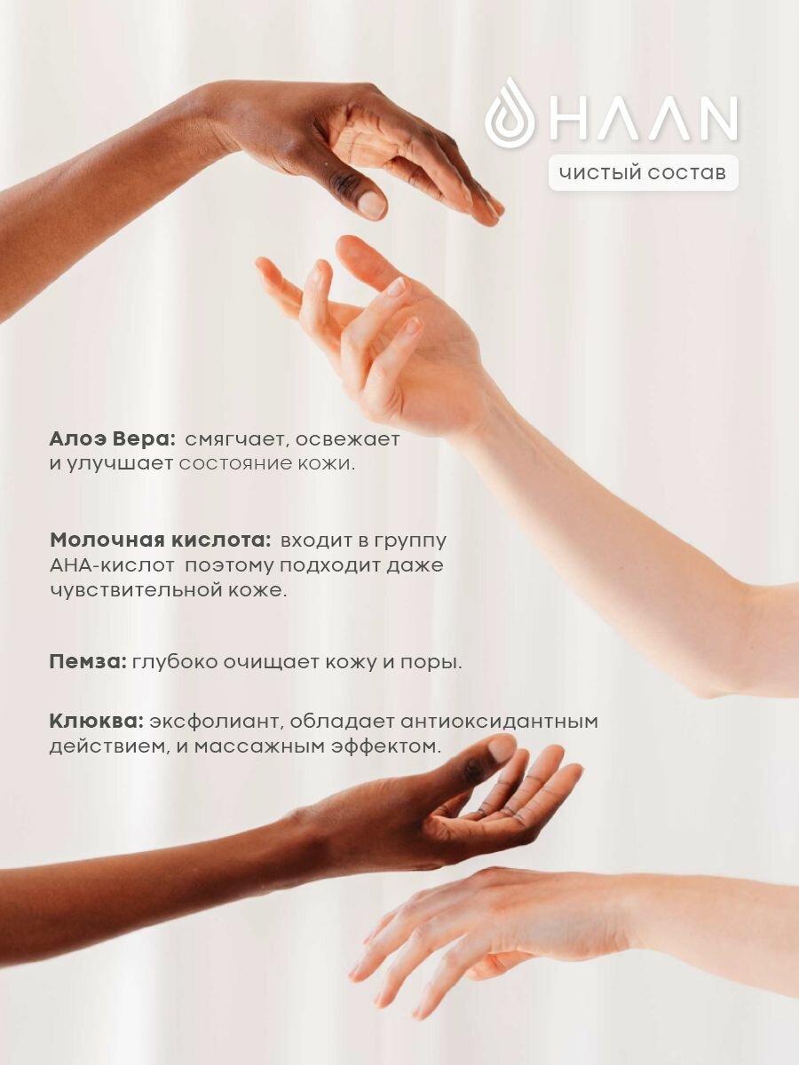 • Натуральная пемза и семена клюквы выступают в качестве эксфолианта – отшелушивающего вещества.