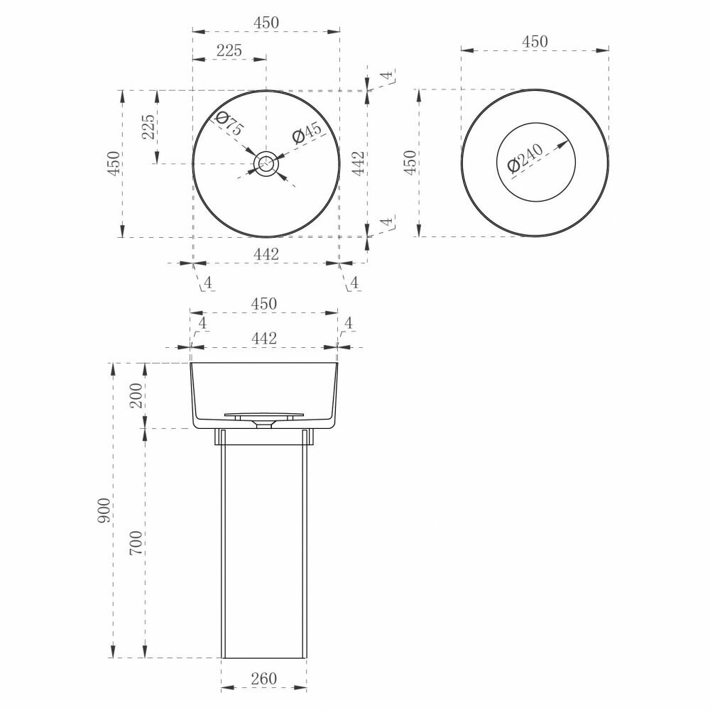 Array форма раковины Abber Kristall оптимальных размеров: шириной 45 см, глубиной 45 см, высотой 90 см, способствует комфорту использования и монтажа. Современный стиль, в котором выполнена раковина Abber AT2702Vesuvian передается во всех элементах данной модели. Материалом, из которого произведена раковина AT2702Vesuvian является полиэфирная смола, данный материал отличается максимально гладкой поверхностью, и абсолютной гигиениченостью.