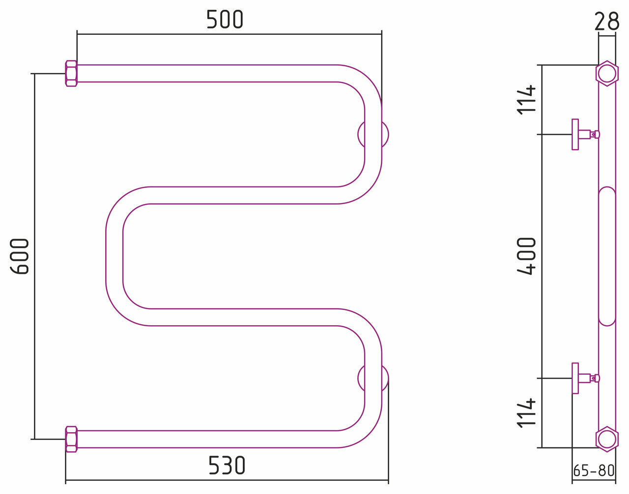 Водяной полотенцесушитель Богема+ с его универсальным подключением и обилием типоразмеров — их целых 27 — подойдёт буквально в любую ванную комнату. Богема+ прямая в компактном размере 500х150 прекрасно уместится в небольшую узкую нишу в компактном совмещённом санузле в квартире, а большая Богема+ размером 1900х800 эффективно согреет просторную ванную комнату площадью до 16 квадратных метров (например, в загородном доме). Несколько групп прямых перемычек обеспечивают идеальную теплоотдачу и высокую функциональность: на Богеме+ прямой можно разместить много полотенец или других вещей, которые необходимо быстро высушить.Все изделия можно окрасить в один из матовых или глянцевых цветов. Подробнее вы можете ознакомиться с палитрой, наведя курсор мыши на модель или открыв карточку товара.Мы хотим, чтобы вы пользовались нашим полотенцесушителем как можно дольше. ПолимерПротект — инновационная технология, созданная нашими инженерами — защищает поверхность труб от электрохимической коррозии на срок до 10 лет, так что вы сможете наслаждаться красотой, надёжностью и функциональностью Богемы+ прямой долгие годы.Всё необходимое для подключения уже входит в комплектацию изделия.