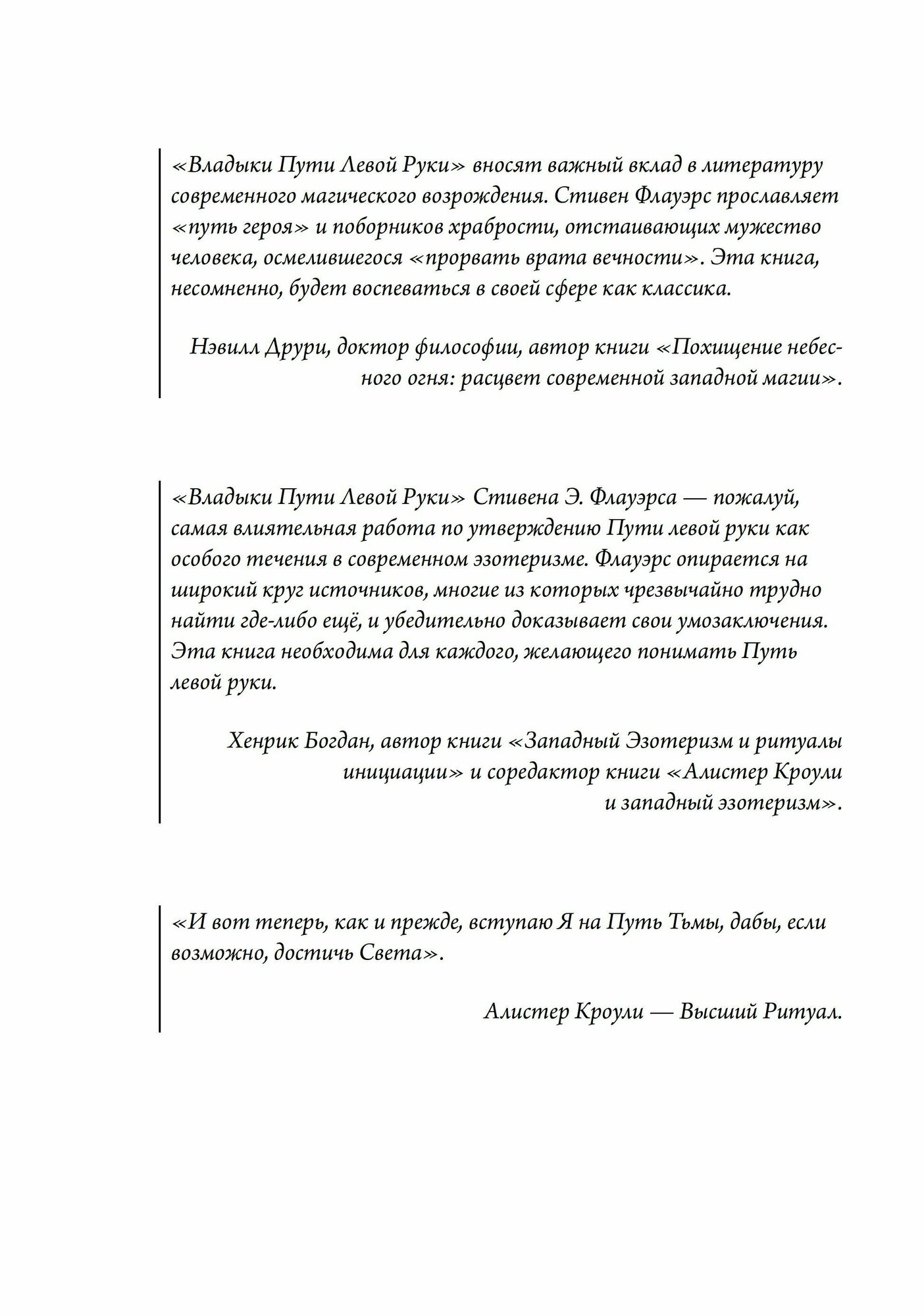Флауэрс показывает, что Путь левой руки — отнюдь не зло, а часть нашего наследия и нашего глубинного стремления быть свободными, независимыми и управлять своей судьбой.