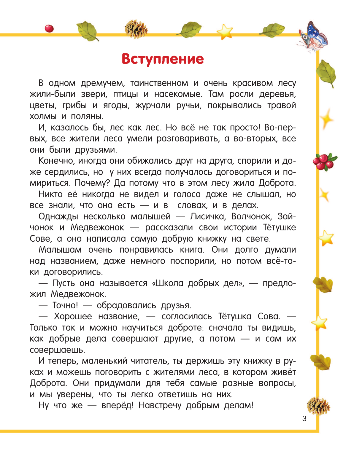 Книга "Школа добрых дел" — это сборник интересных психотерапевтических сказок для малышей. Юный читатель подружится с добрыми героями, узнает, как вести себя в разных ситуациях, научится отличать "плохое" от "хорошего". В конце каждой сказки дети и родители найдут простые вопросы от автора книги — социального психолога, педагога, писателя Ольги Шурыгиной. Отвечая на них, малыш научится справляться со стрессом и выражать свои чувства.