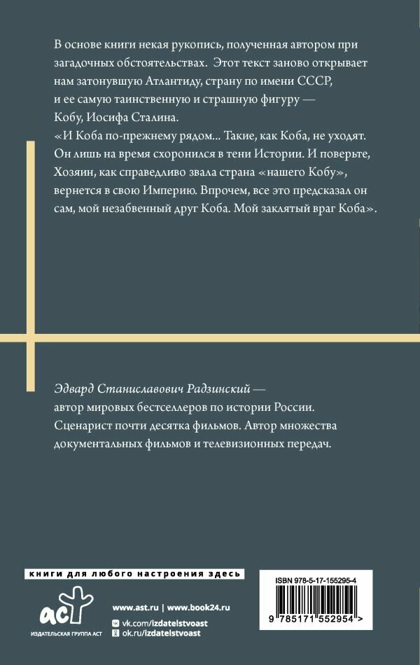 В основе книги некая рукопись, полученная автором при загадочных обстоятельствах. Этот текст заново открывает нам затонувшую Атлантиду, страну по имени СССР, и ее самую таинственную и страшную фигуру - Кобу, Иосифа Сталина."И Коба по-прежнему рядом... Такие как Коба не уходят. Он лишь на время схоронился в тени Истории. И поверьте, Хозяин, как справедливо звала страна "нашего Кобу" вернется в свою Империю. Впрочем, все это предсказал он сам, мой незабвенный друг Коба. Мой заклятый враг Коба".