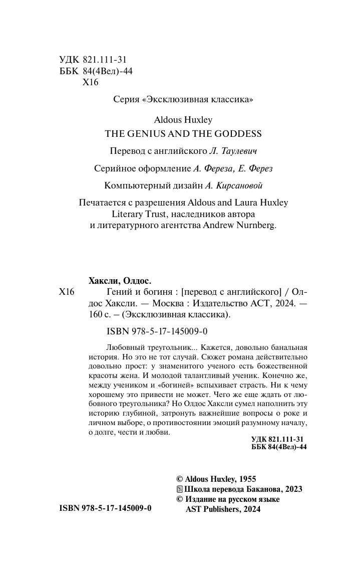 Книга: Гений и богиня (Олдос Леонард Хаксли); АСТ, 2024
